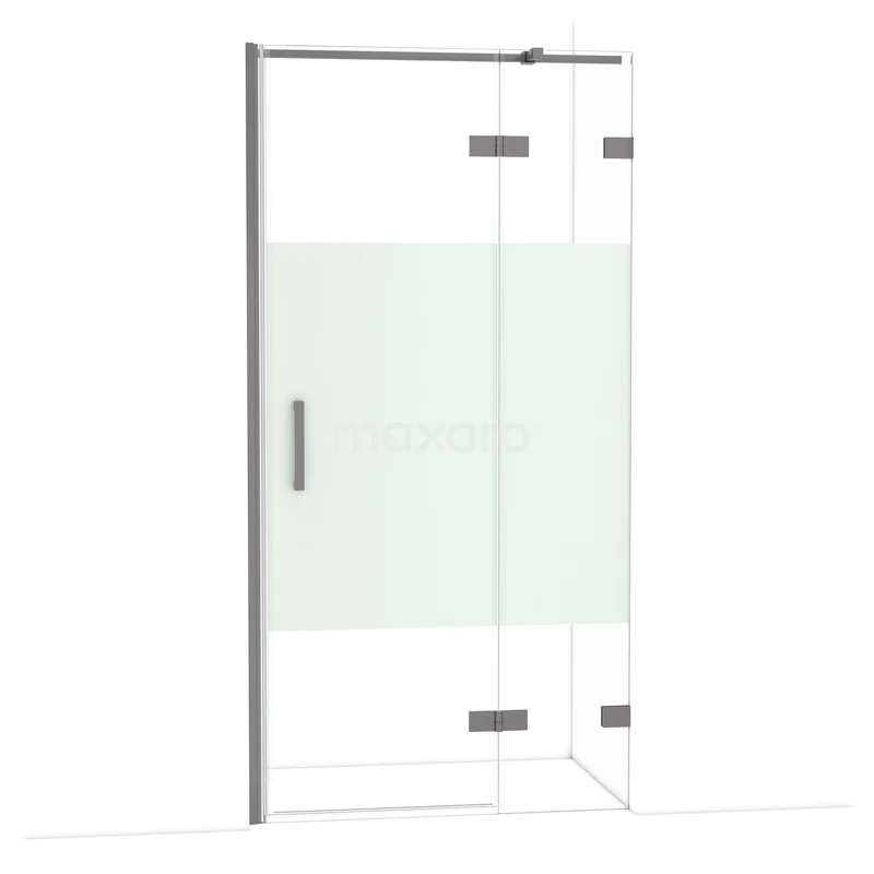 Diamond Duschtür | 100 cm Schwarzes Metall Klar mit matter Streifen Drehtür