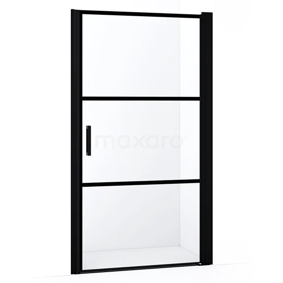 Diamond Duschtür | 105 cm Matt Schwarz Klar mit 4 schwarzen Streifen Drehtür