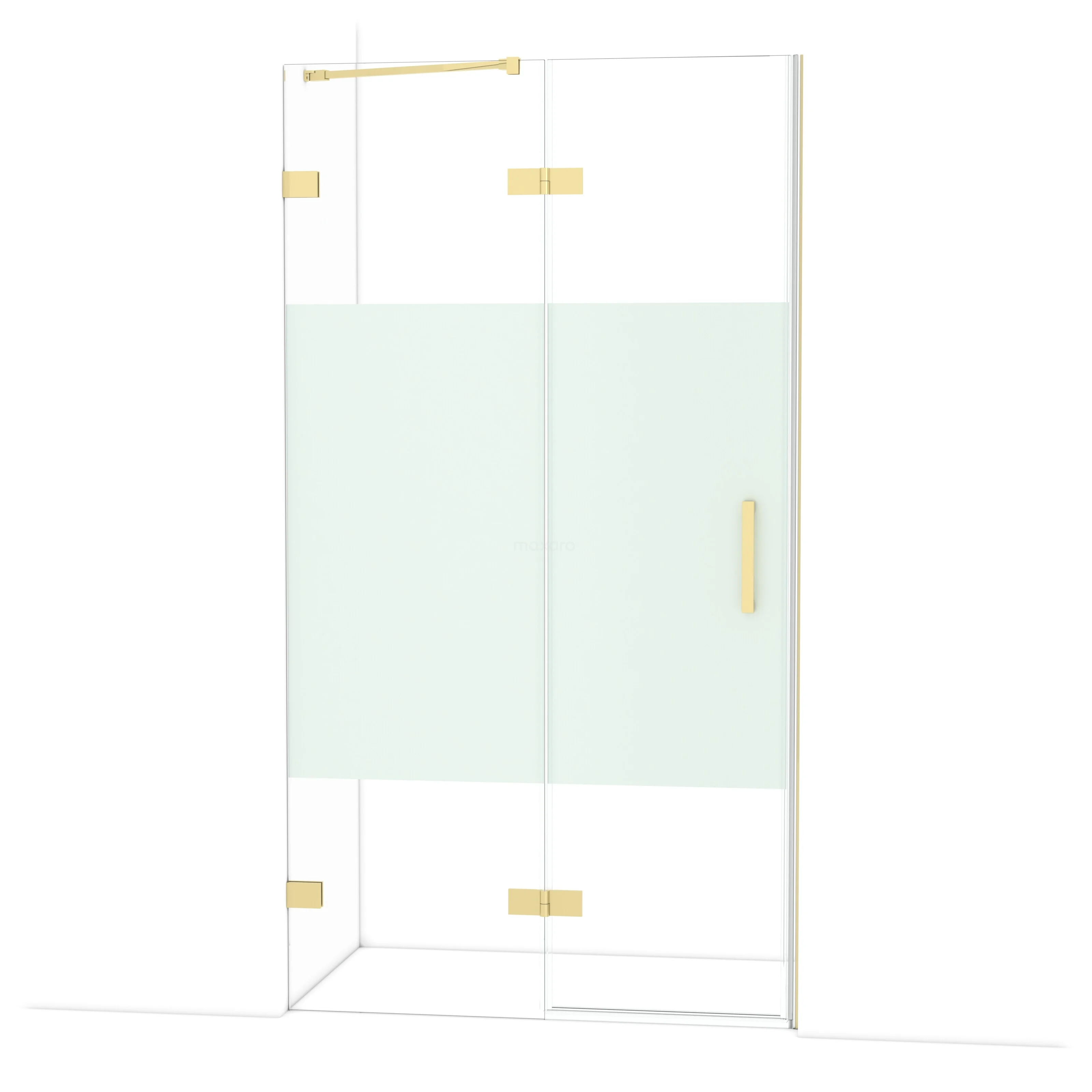 Diamond Duschtür | 110 cm Glänzendes Hellgold Klar mit matter Streifen Drehtür