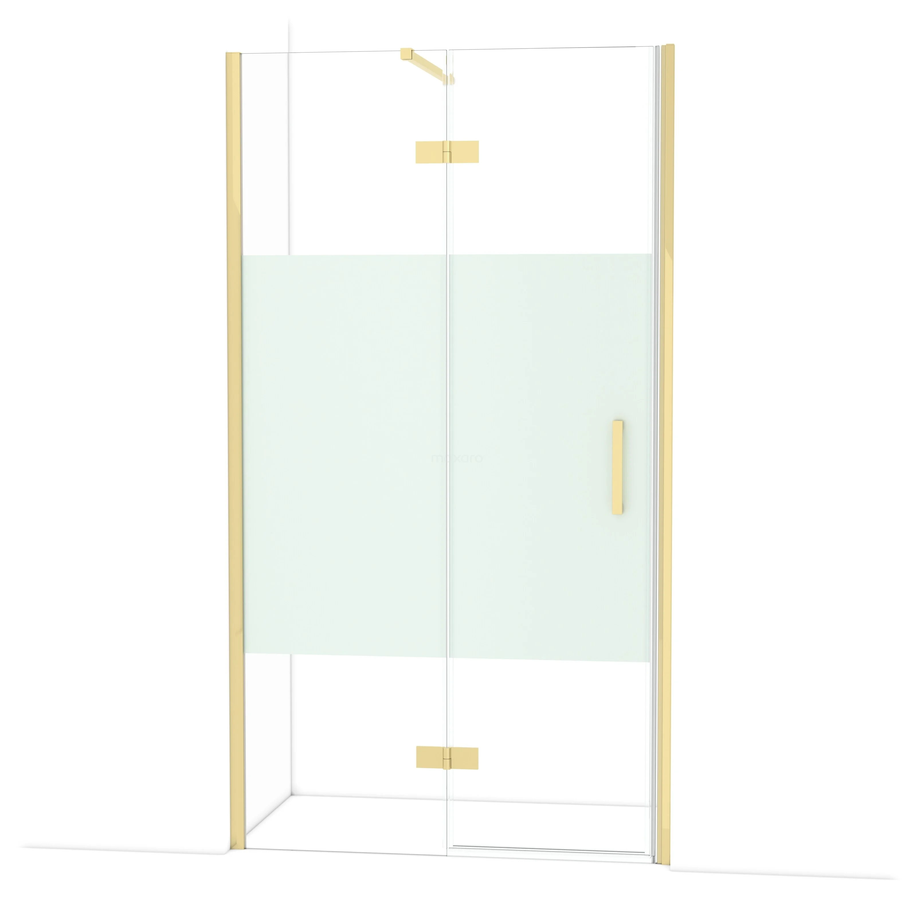 Diamond Duschtür | 110 cm Glänzendes Hellgold Klar mit matter Streifen Drehtür