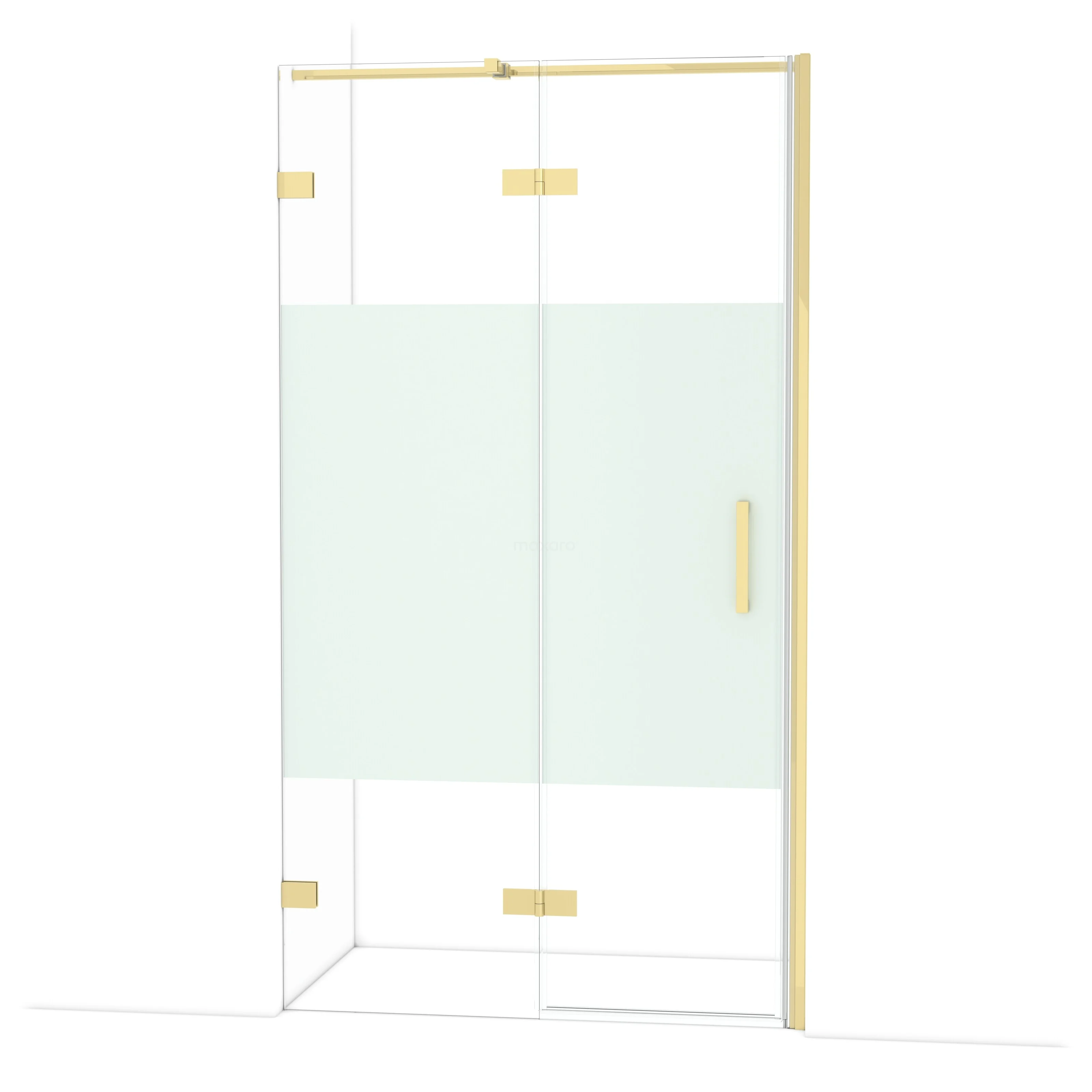 Diamond Duschtür | 110 cm Glänzendes Hellgold Klar mit matter Streifen Drehtür