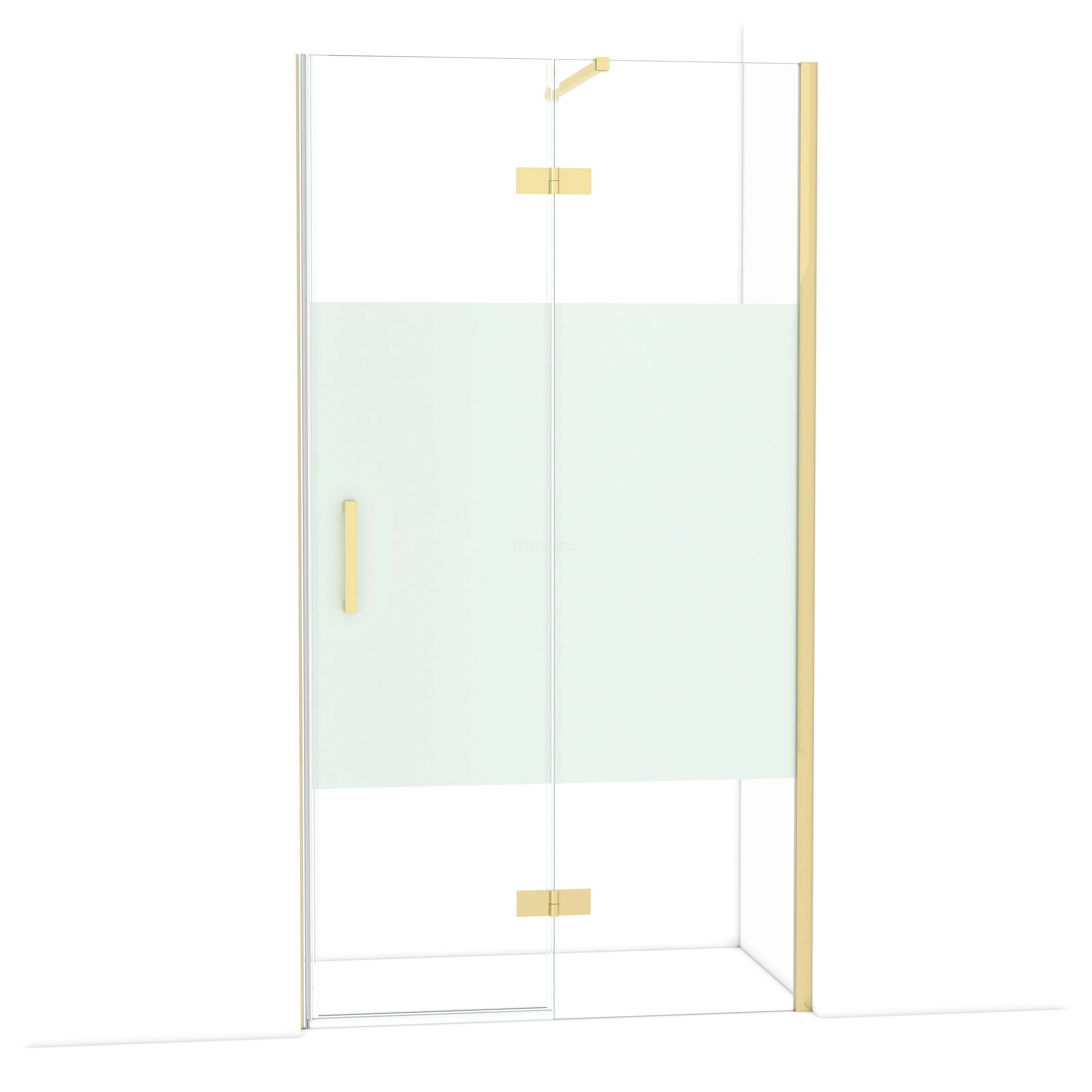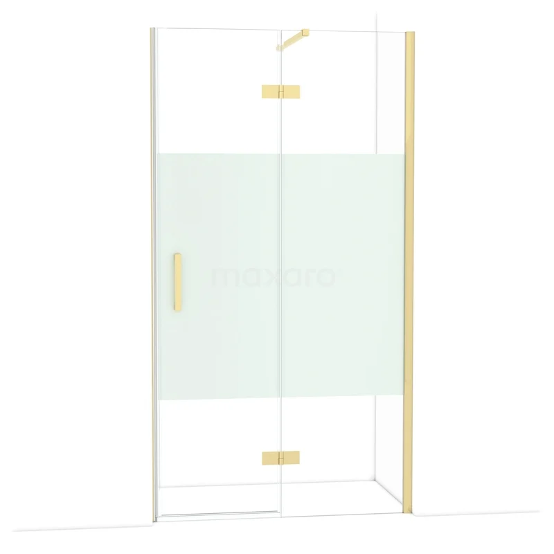 Diamond Duschtür | 110 cm Glänzendes Hellgold Klar mit matter Streifen Drehtür