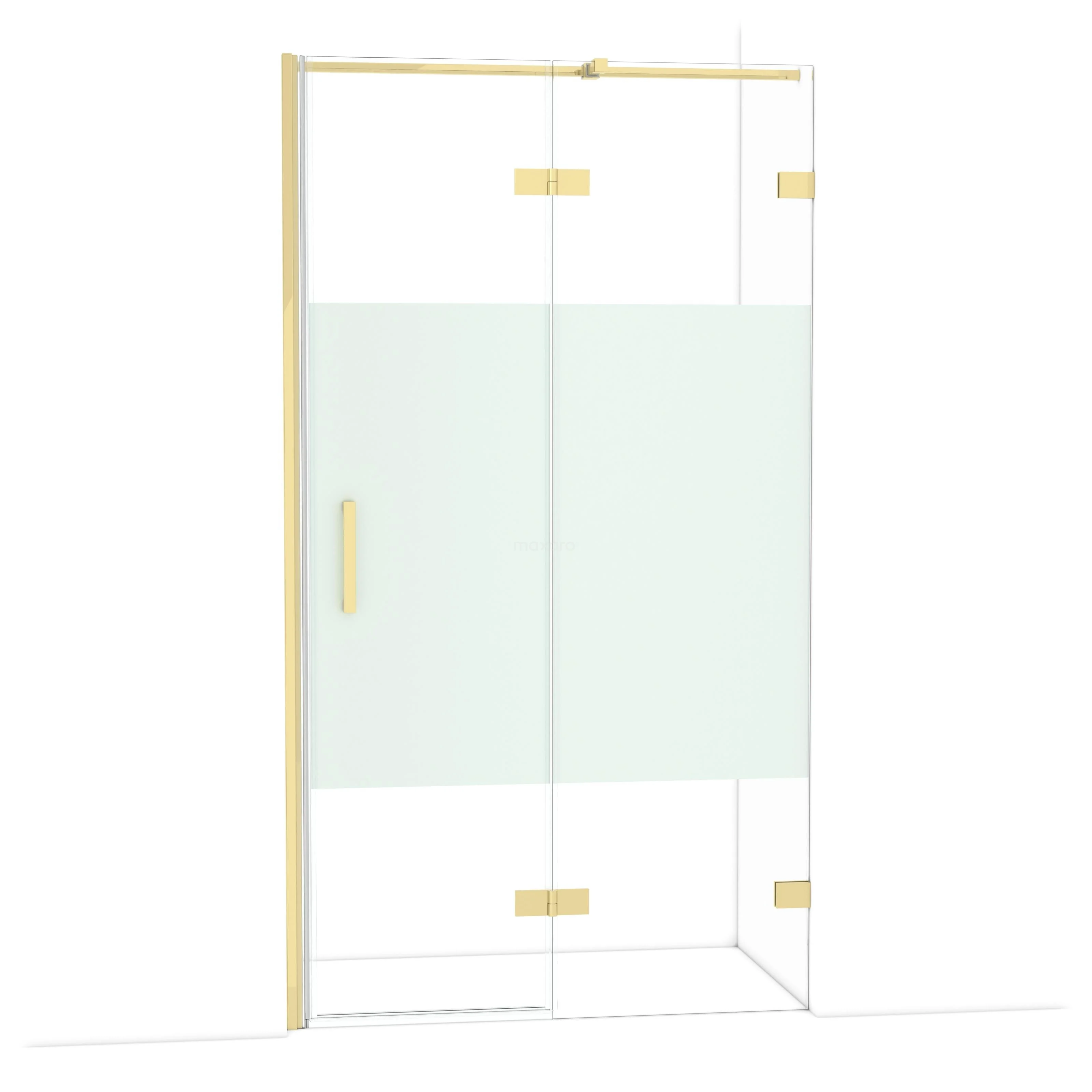 Diamond Duschtür | 110 cm Glänzendes Hellgold Klar mit matter Streifen Drehtür