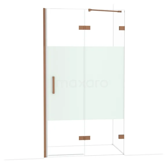 Die 110 cm lange Drehtür von Diamond ist ideal, um Ihren Duschbereich abzuschließen. Sie hat ein markantes Design aus glänzendem Kupfer und ist mit hochwertigen Scharnieren, einer Zweipunktbefestigung und einem vertikalen Griff ausgestattet. Das Klarglas mit mattem Streifen sorgt für mehr Privatsphäre. Durch die Verstellbarkeit lässt sich die Duschtür leicht anpassen. Die Gesamtbreite ist von 111,7 bis 112,7 cm verstellbar.