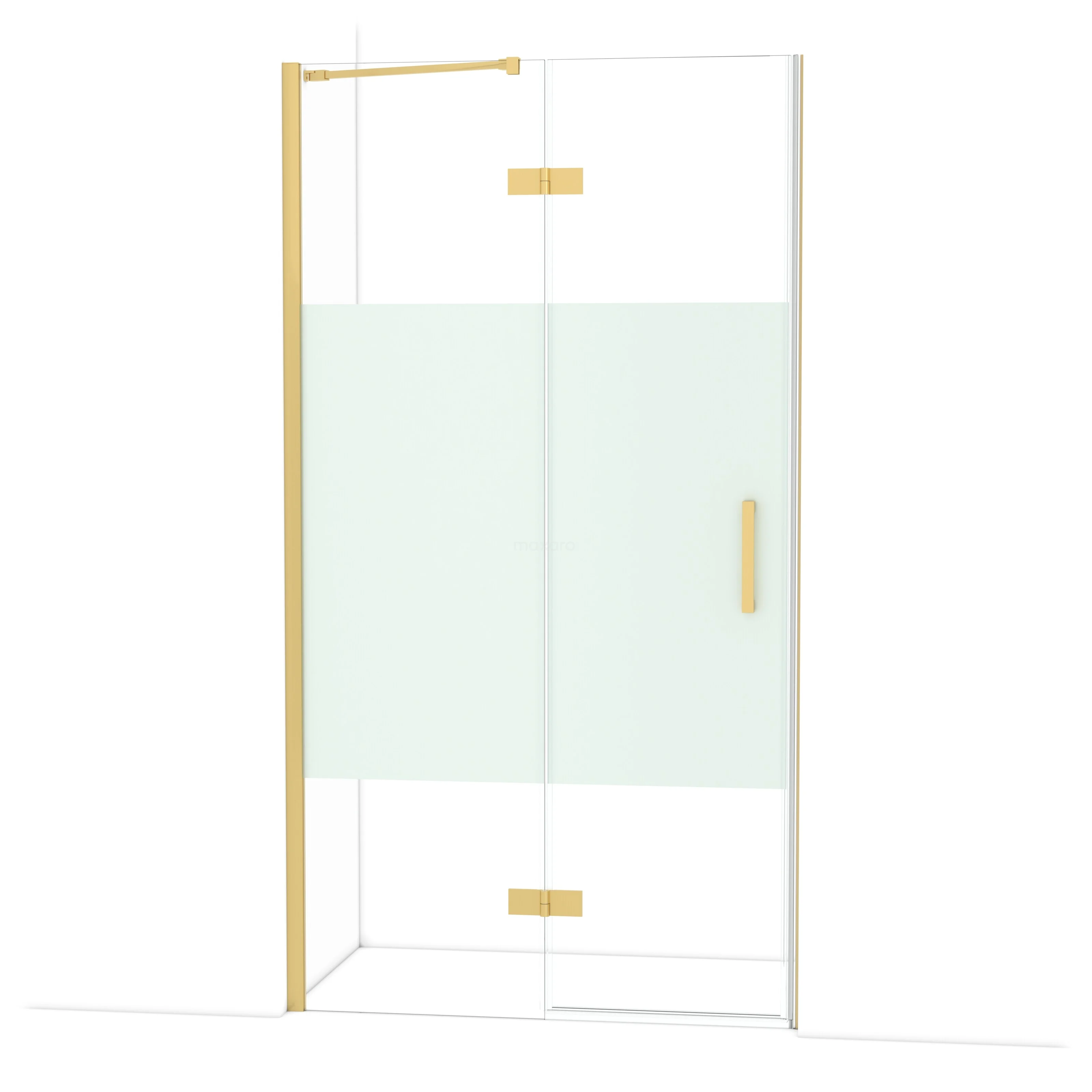 Die Diamond-Drehtür von 110 cm ist ideal, um deine Duschnis abzuschließen. Dieses Exemplar hat ein luxuriöses Design aus Gold und ist mit hochwertigen Scharnieren, Wandprofil und einem vertikalen Griff ausgestattet. Das Klarglas mit matter Streifen sorgt für mehr Privatsphäre. Durch die Verstellbarkeit lässt sich die Duschtür leicht anpassen. Die Gesamtbreite ist von 109,8 bis einschließlich 111,3 cm verstellbar.