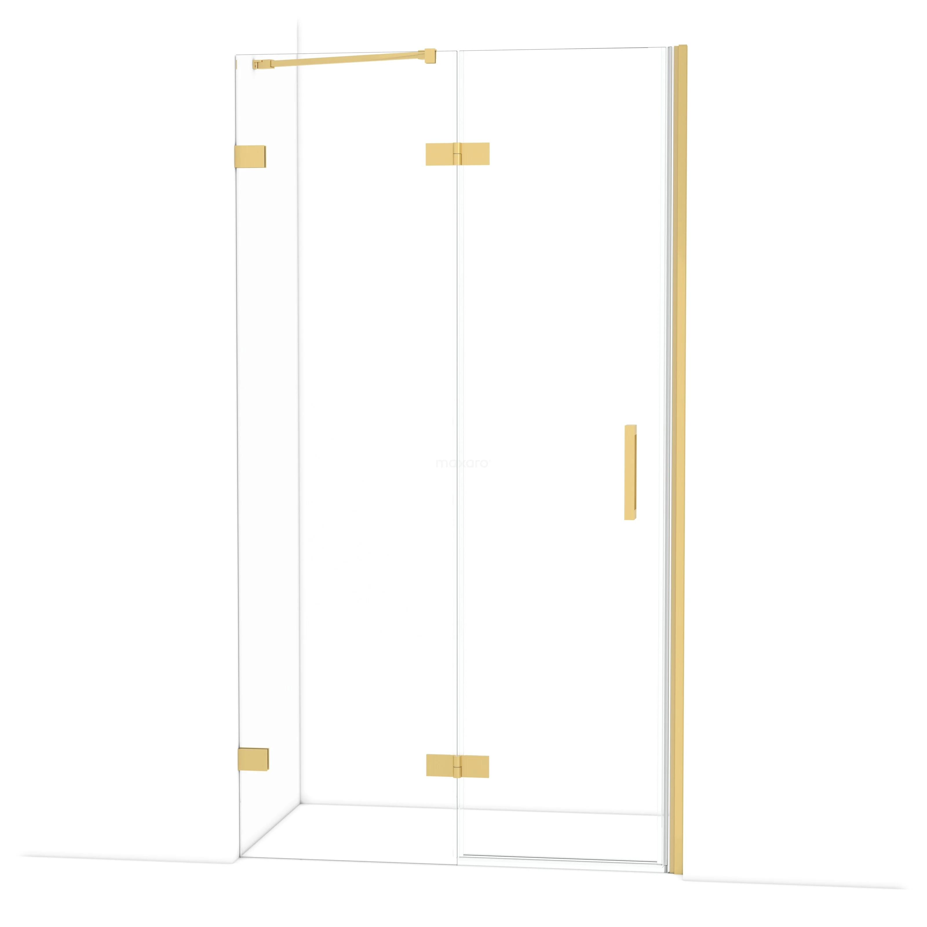 Die Diamond-Drehtür von 110 cm ist ideal, um deine Duschnis abzuschließen. Dieses Exemplar hat ein luxuriöses Design aus Gold und ist mit hochwertigen Scharnieren, einer Zweipunktbefestigung und einem vertikalen Griff ausgestattet. Das Klarglas sorgt für ein räumliches Gefühl. Durch die Verstellbarkeit lässt sich die Duschtür leicht anpassen. Die Gesamtbreite ist von 111,7 bis 112,7 cm verstellbar.