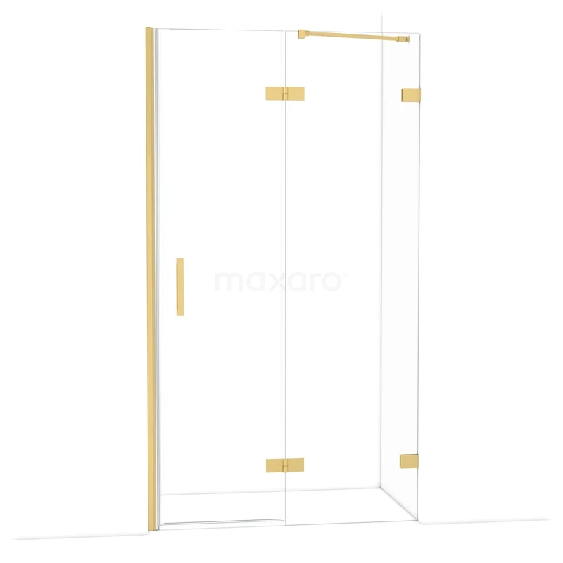 Die Diamond-Drehtür von 110 cm ist ideal, um deine Duschnis abzuschließen. Dieses Exemplar hat ein luxuriöses Design aus Gold und ist mit hochwertigen Scharnieren, einer Zweipunktbefestigung und einem vertikalen Griff ausgestattet. Das Klarglas sorgt für ein räumliches Gefühl. Durch die Verstellbarkeit lässt sich die Duschtür leicht anpassen. Die Gesamtbreite ist von 111,7 bis 112,7 cm verstellbar.