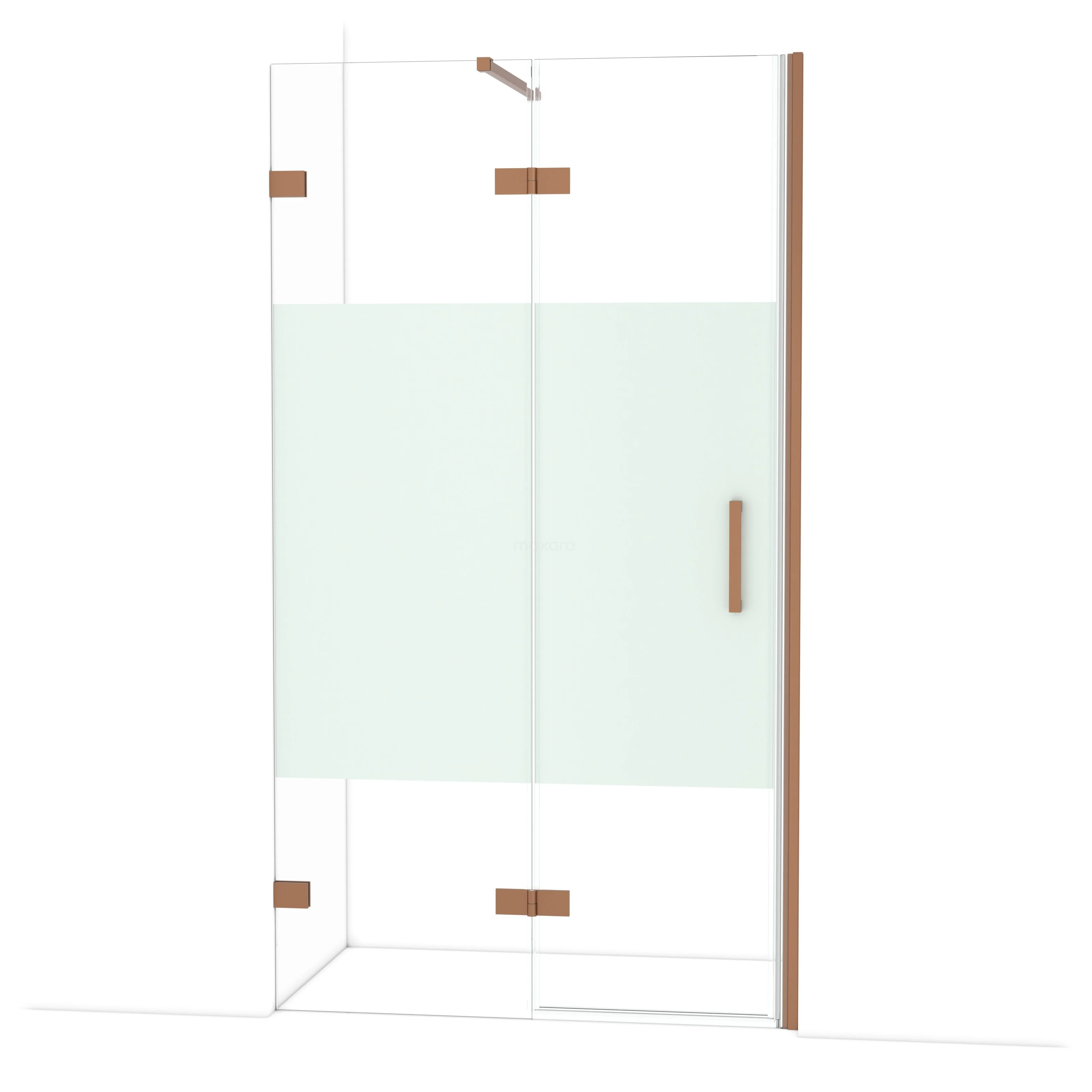 Die 110 cm lange Drehtür von Diamond ist ideal für den Abschluss Ihres Duschbereichs. Sie ist in Kupfer ausgeführt und verfügt über hochwertige Scharniere, eine Zwei-Punkt-Befestigung und einen vertikalen Griff. Das Klarglas mit mattem Streifen sorgt für Privatsphäre. Durch die Verstellbarkeit lässt sich die Duschtür leicht anpassen. Die Gesamtbreite ist von 111,7 bis 112,7 cm verstellbar.