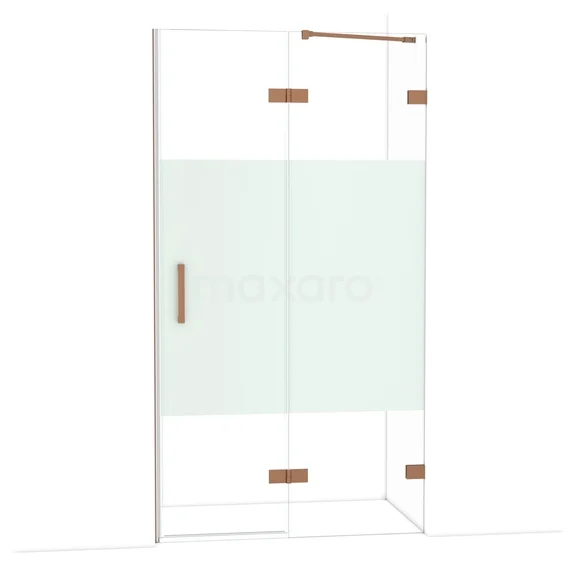 Die Diamond-Drehtür von 110 cm ist ideal, um deine Dusche abzuschließen. Dieses Exemplar ist in Kupfer ausgeführt und mit hochwertigen Scharnieren, einer Zweipunktbefestigung und einem vertikalen Griff ausgestattet. Das Klarglas mit matter Streifen sorgt für mehr Privatsphäre. Durch die Verstellbarkeit lässt sich die Duschtür leicht anpassen. Die Gesamtbreite ist von 109,7 bis 110 cm verstellbar.