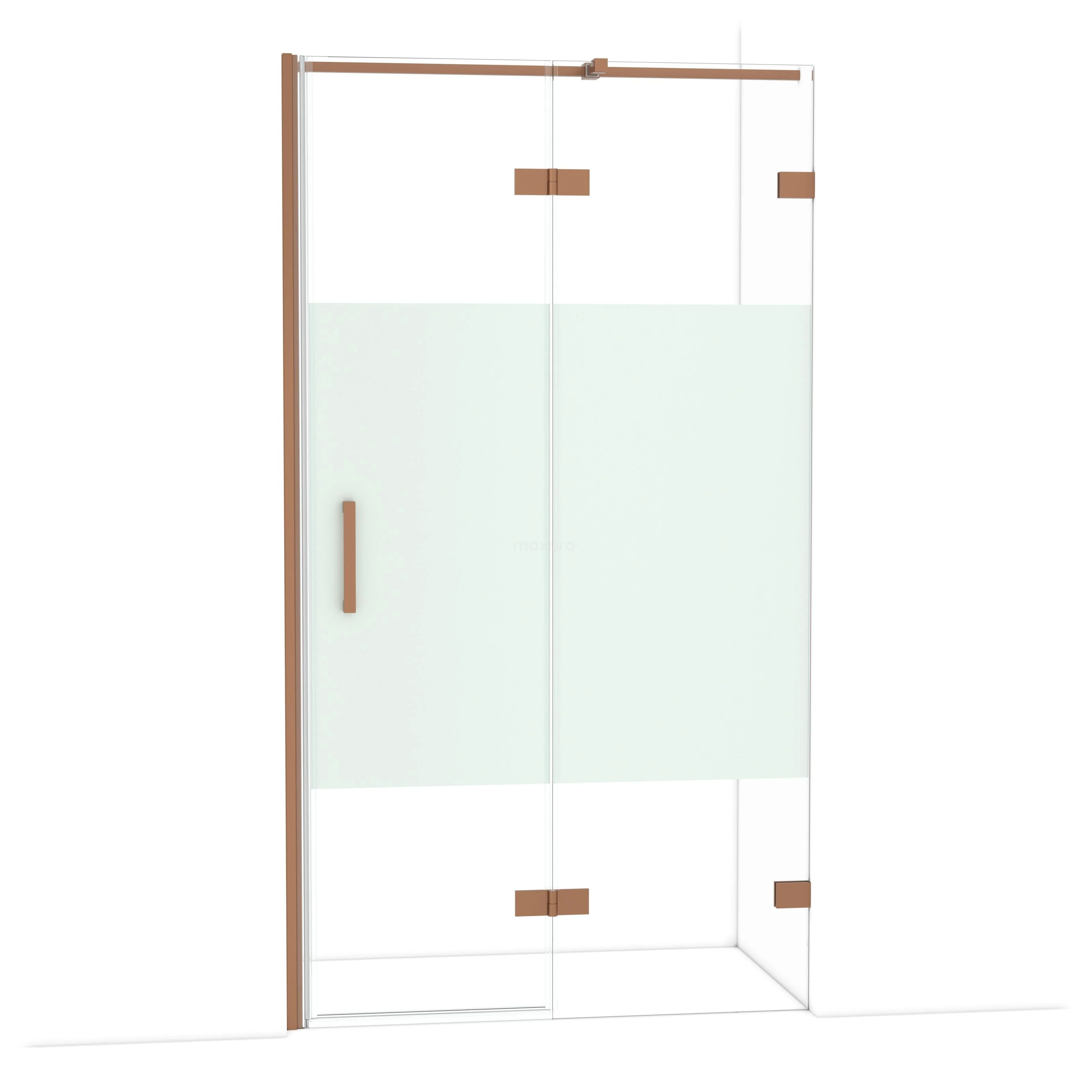 Die Diamond-Drehtür von 110 cm ist ideal, um deine Dusche abzuschließen. Dieses Exemplar ist in Kupfer ausgeführt und mit hochwertigen Scharnieren, einer Zweipunktbefestigung und einem vertikalen Griff ausgestattet. Das Klarglas mit matter Streifen sorgt für mehr Privatsphäre. Durch die Verstellbarkeit lässt sich die Duschtür leicht anpassen. Die Gesamtbreite ist von 111,7 bis einschließlich 112,7 cm verstellbar.