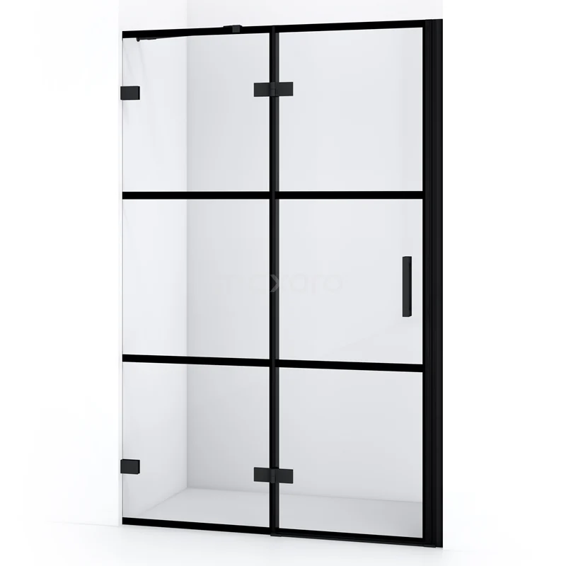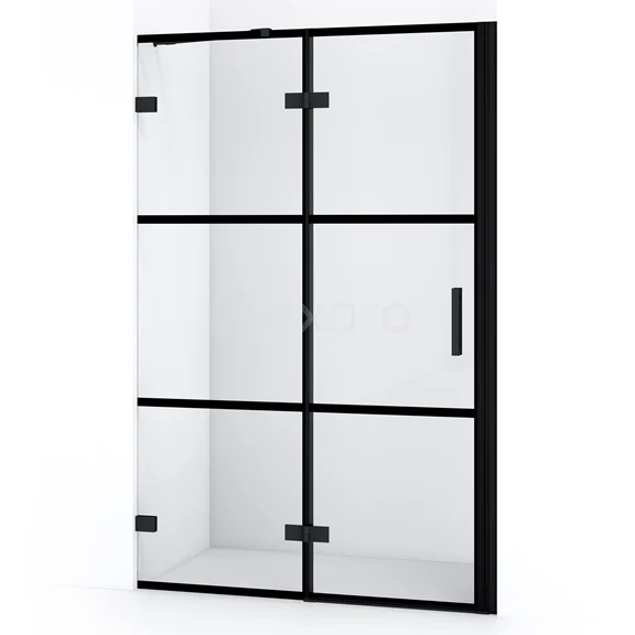 Diamond Duschtür | 110 cm Matt Schwarz Klar mit 4 schwarzen Streifen Drehtür