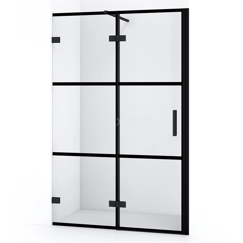 Diamond Duschtür | 110 cm Matt Schwarz Klar mit 4 schwarzen Streifen Drehtür