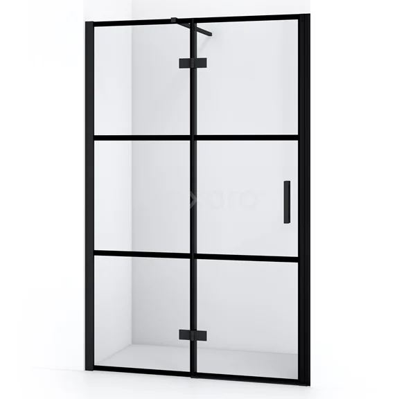 Diamond Duschtür | 110 cm Matt Schwarz Klar mit 4 schwarzen Streifen Drehtür