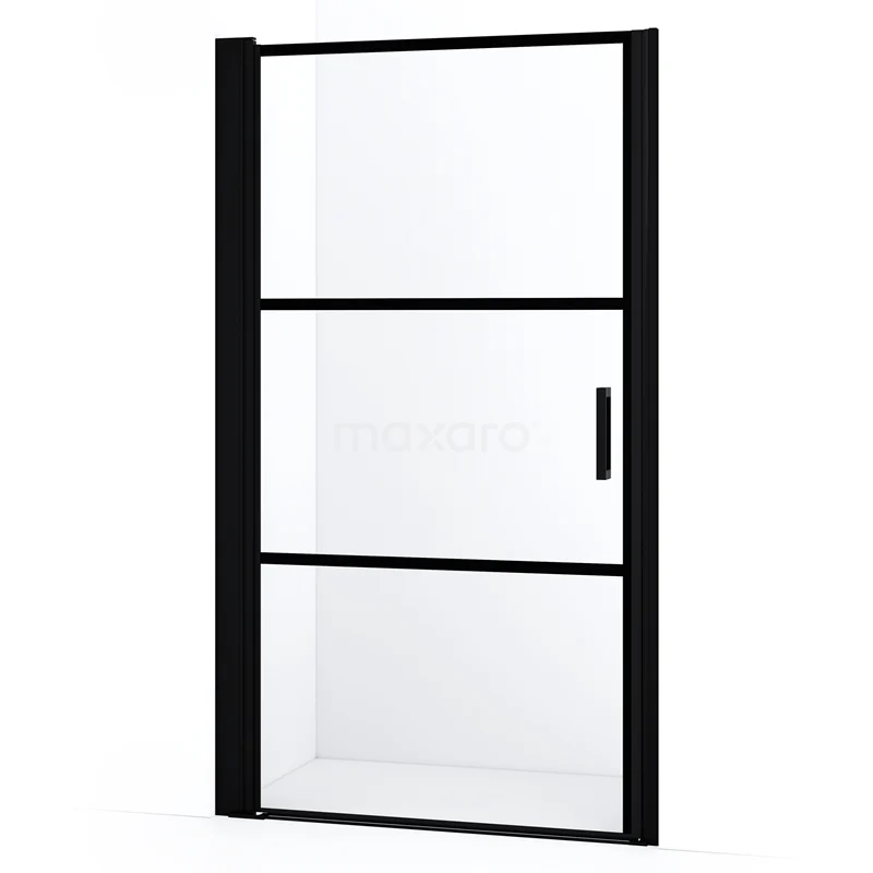 Diamond Duschtür | 110 cm Matt Schwarz Klar mit 4 schwarzen Streifen Drehtür