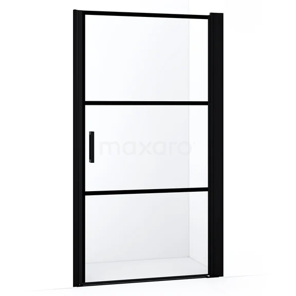Diamond Duschtür | 110 cm Matt Schwarz Klar mit 4 schwarzen Streifen Drehtür