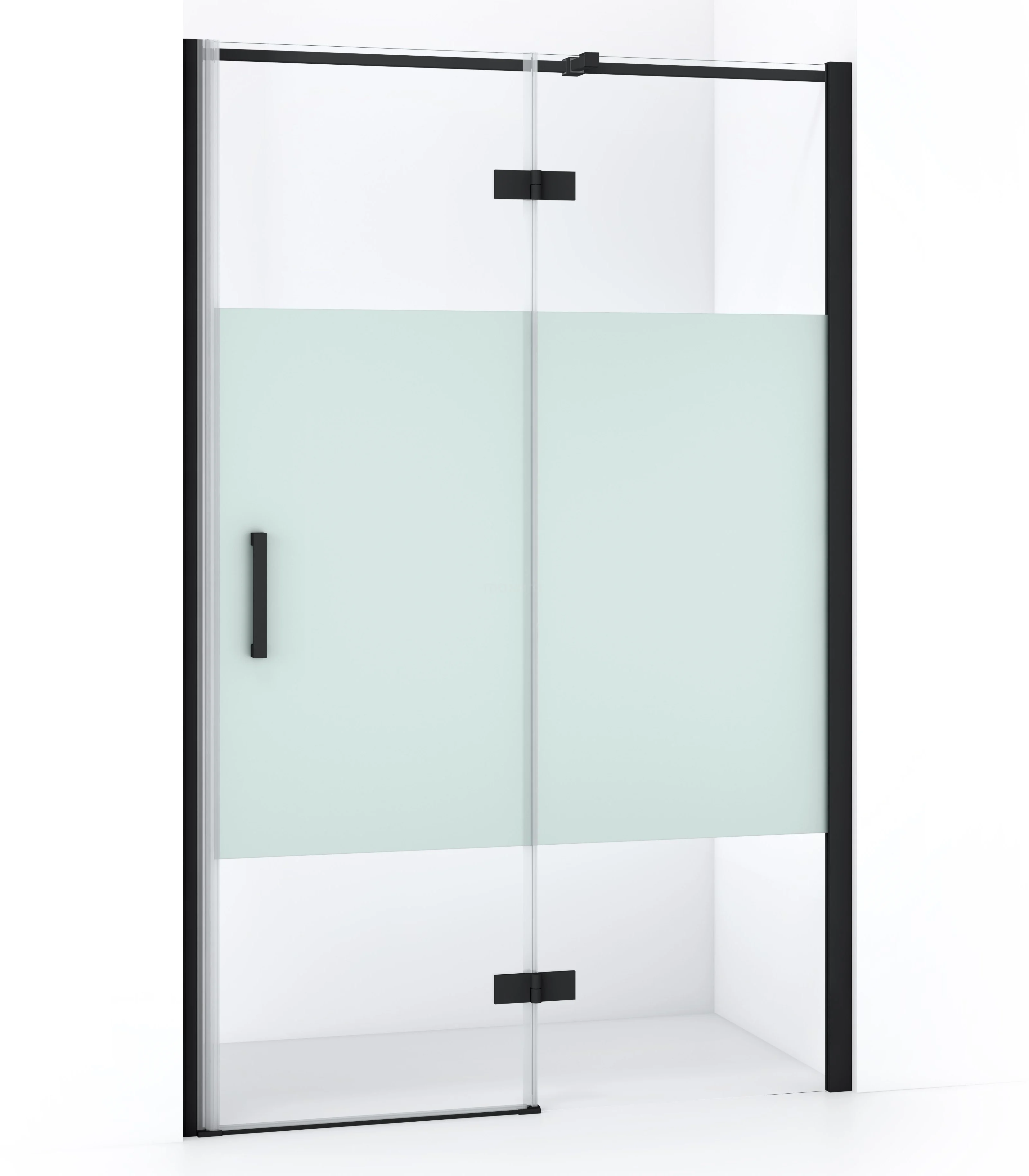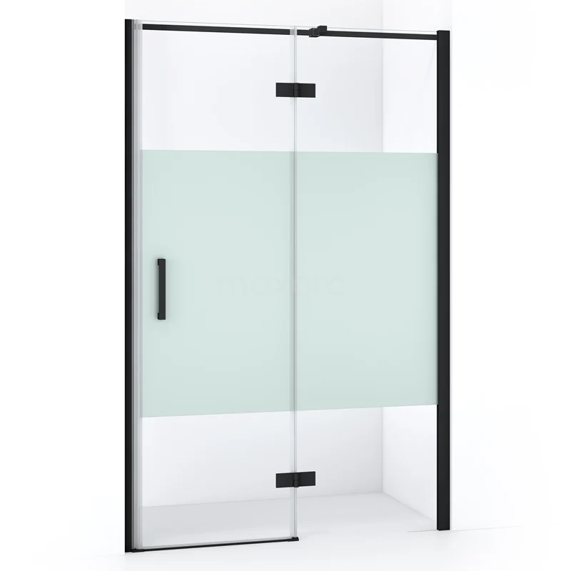 Diamond Duschtür | 110 cm Matt Schwarz Klar mit matter Streifen Drehtür