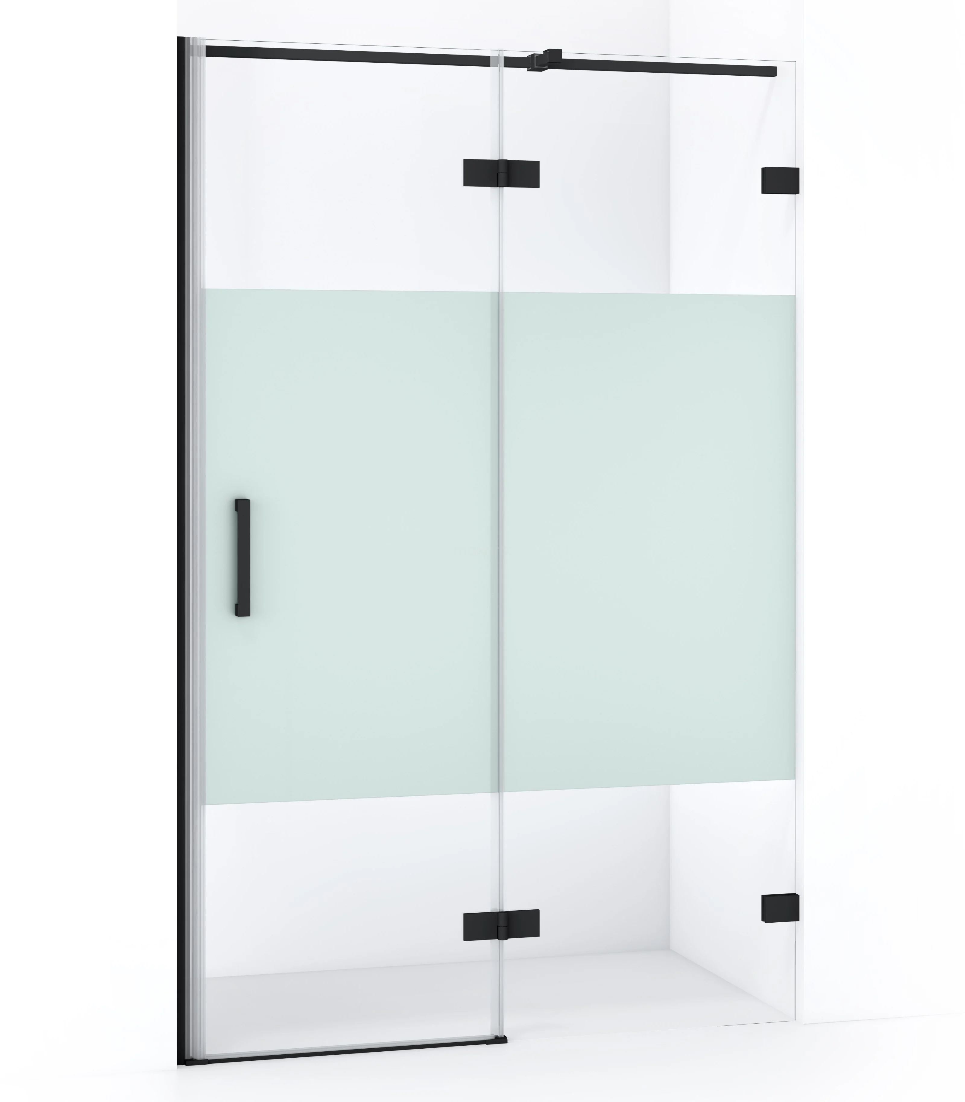 Diamond Duschtür | 110 cm Matt Schwarz Klar mit matter Streifen Drehtür