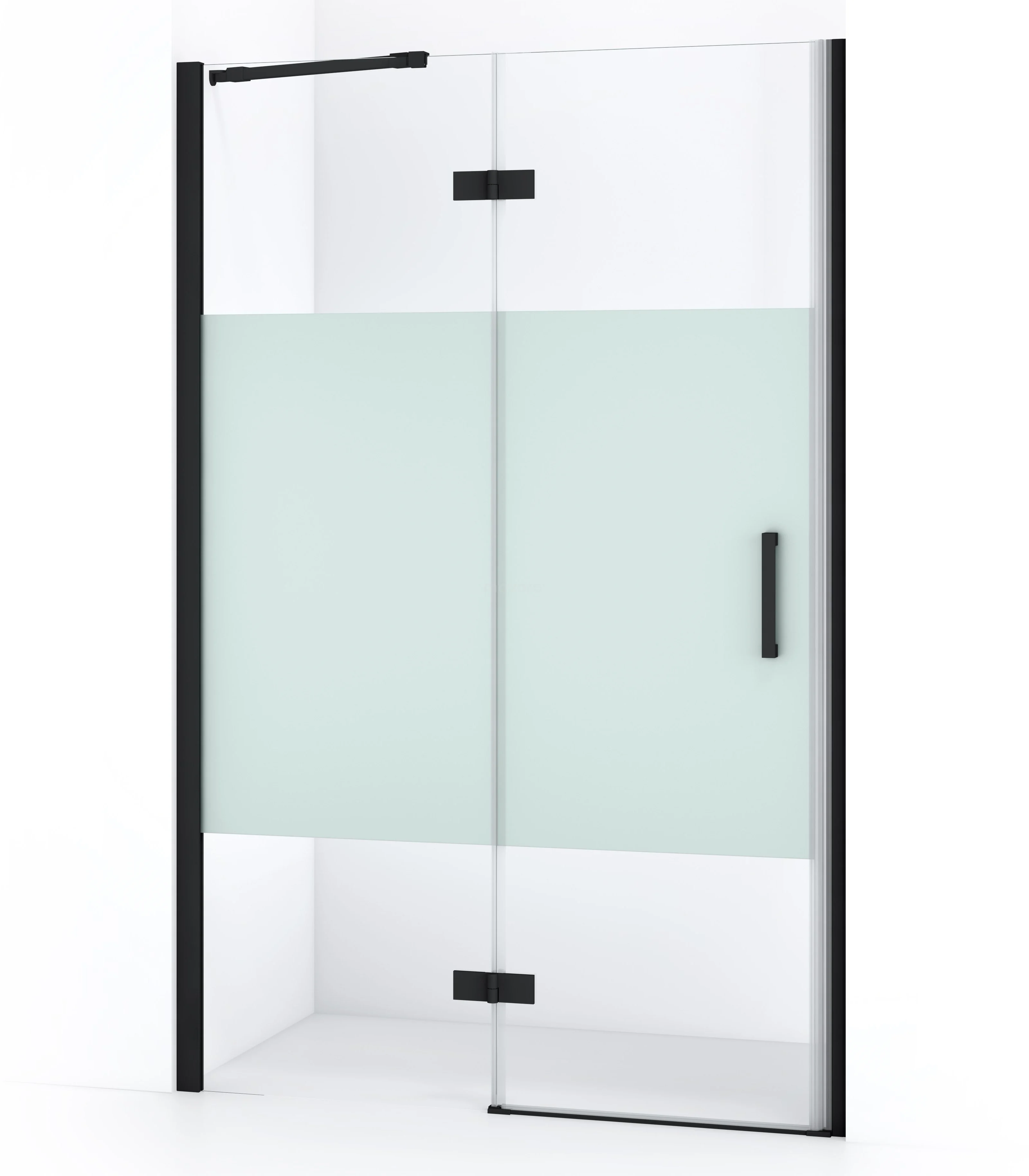 Diamond Duschtür | 110 cm Matt Schwarz Klar mit matter Streifen Drehtür