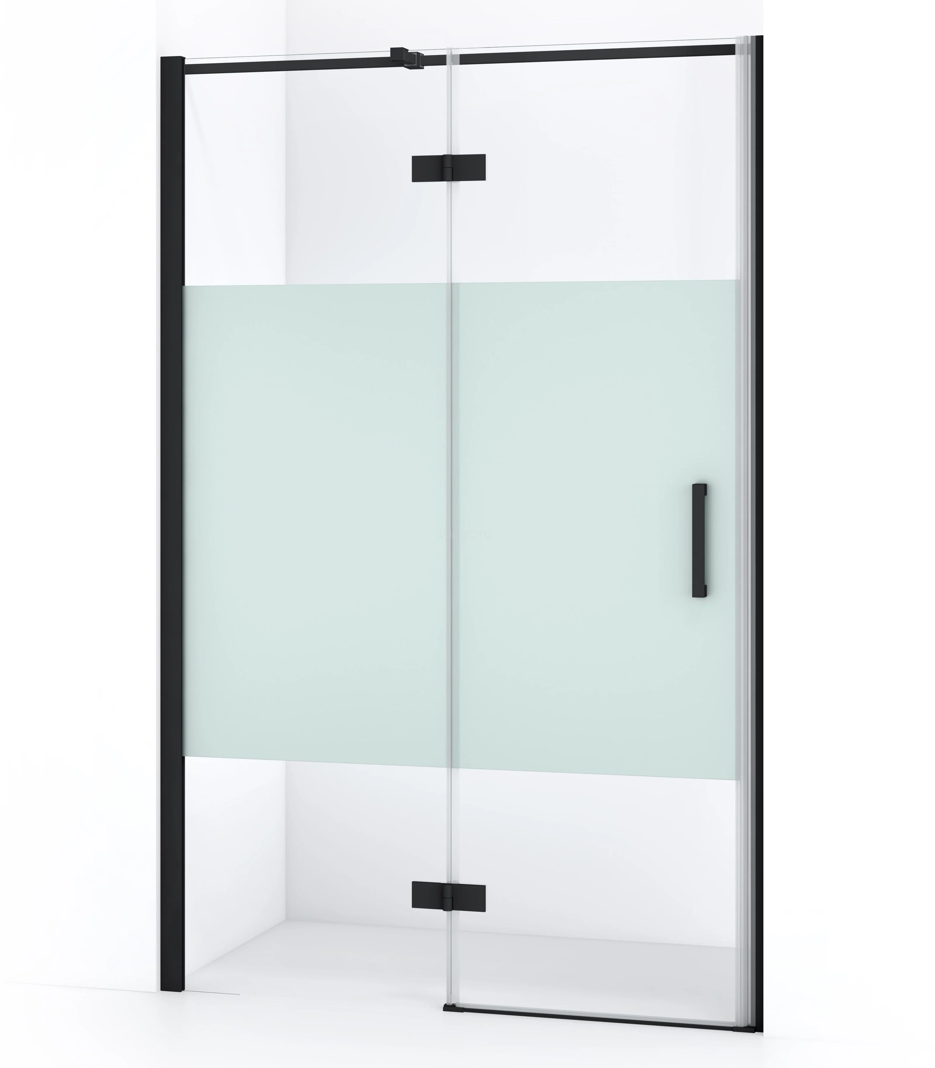 Diamond Duschtür | 110 cm Matt Schwarz Klar mit matter Streifen Drehtür