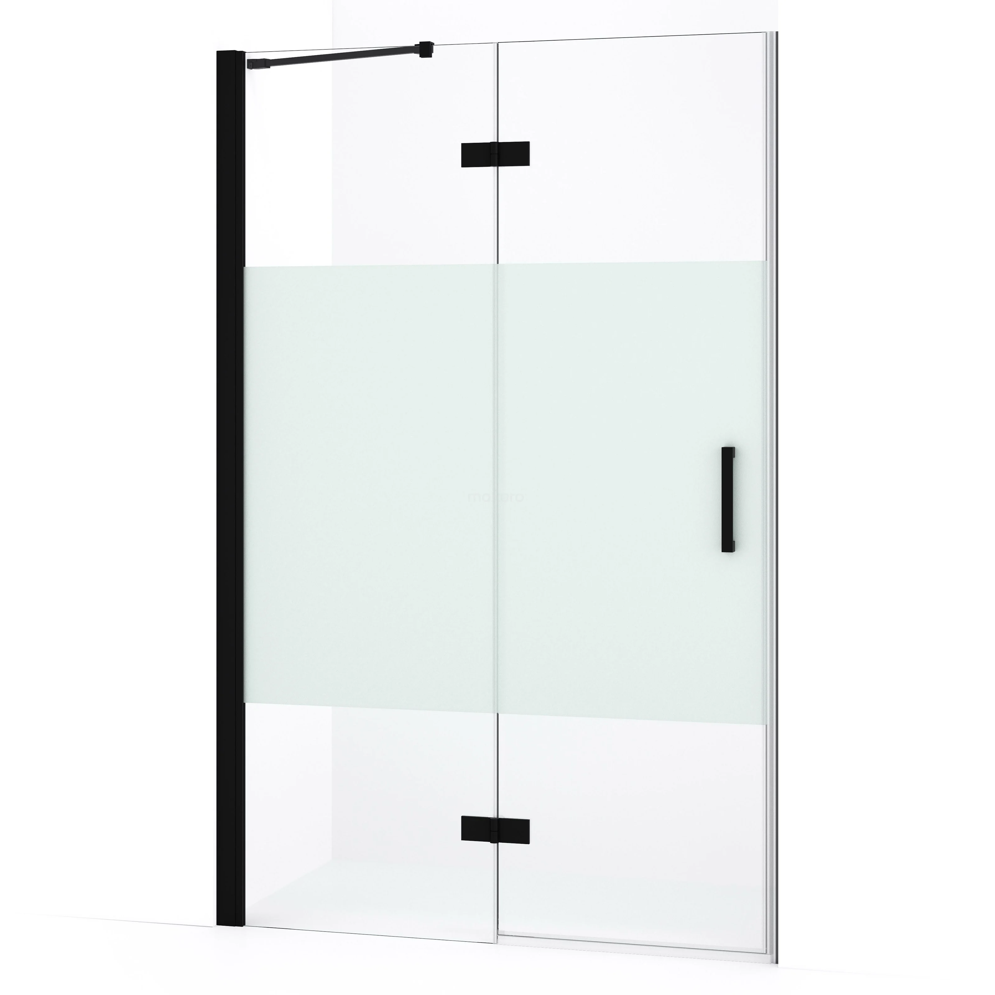 Diamond Duschtür | 110 cm Matt Schwarz Klar mit matter Streifen Drehtür