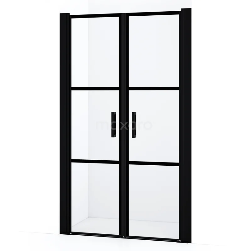 Diamond Duschtür | 110 cm Matt Schwarz Klar mit schwarzen Streifen Pendeltür