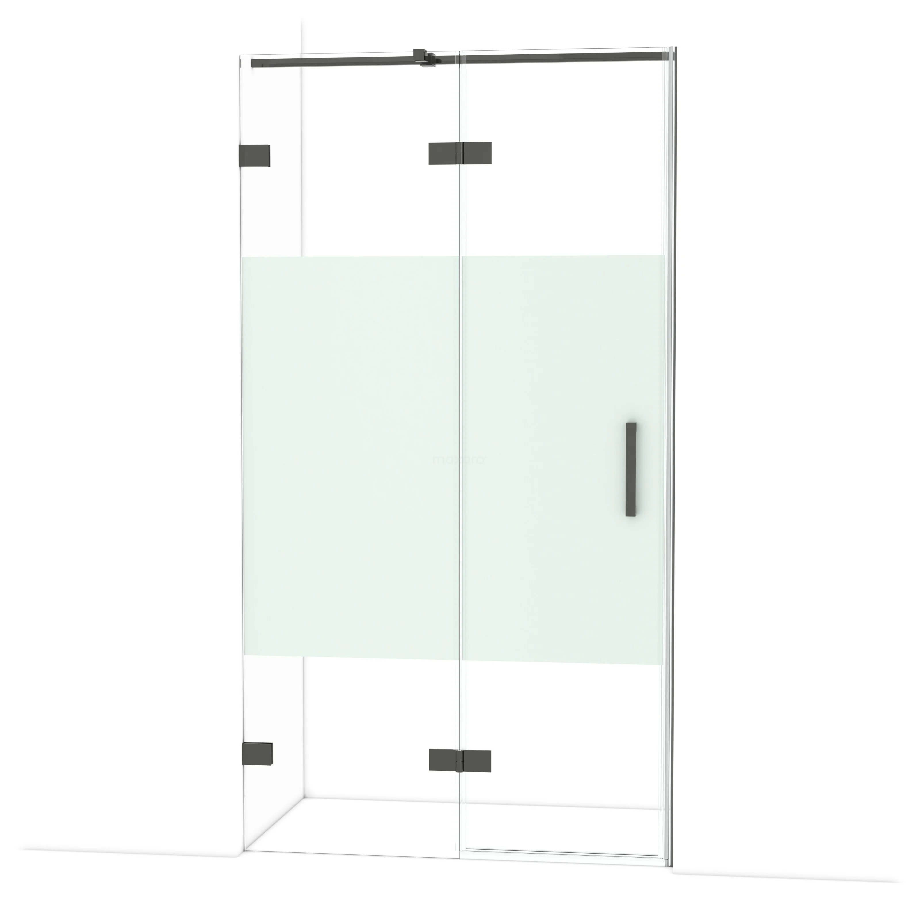 Diamond Duschtür | 110 cm Schwarzchrom Klar mit matter Streifen Drehtür