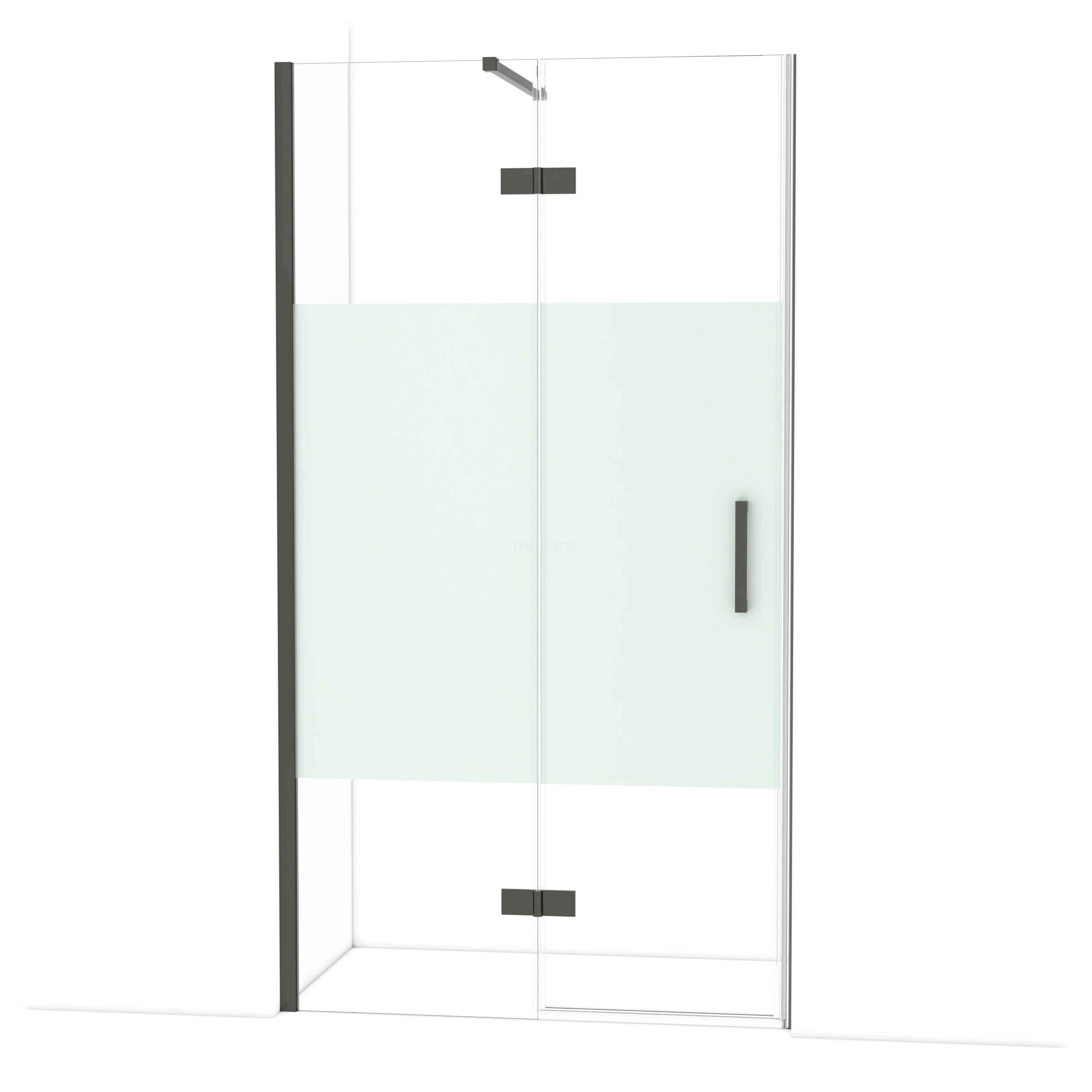 Diamond Duschtür | 110 cm Schwarzchrom Klar mit matter Streifen Drehtür