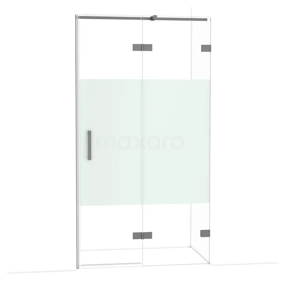 Diamond Duschtür | 110 cm Schwarzes Metall Klar mit matter Streifen Drehtür