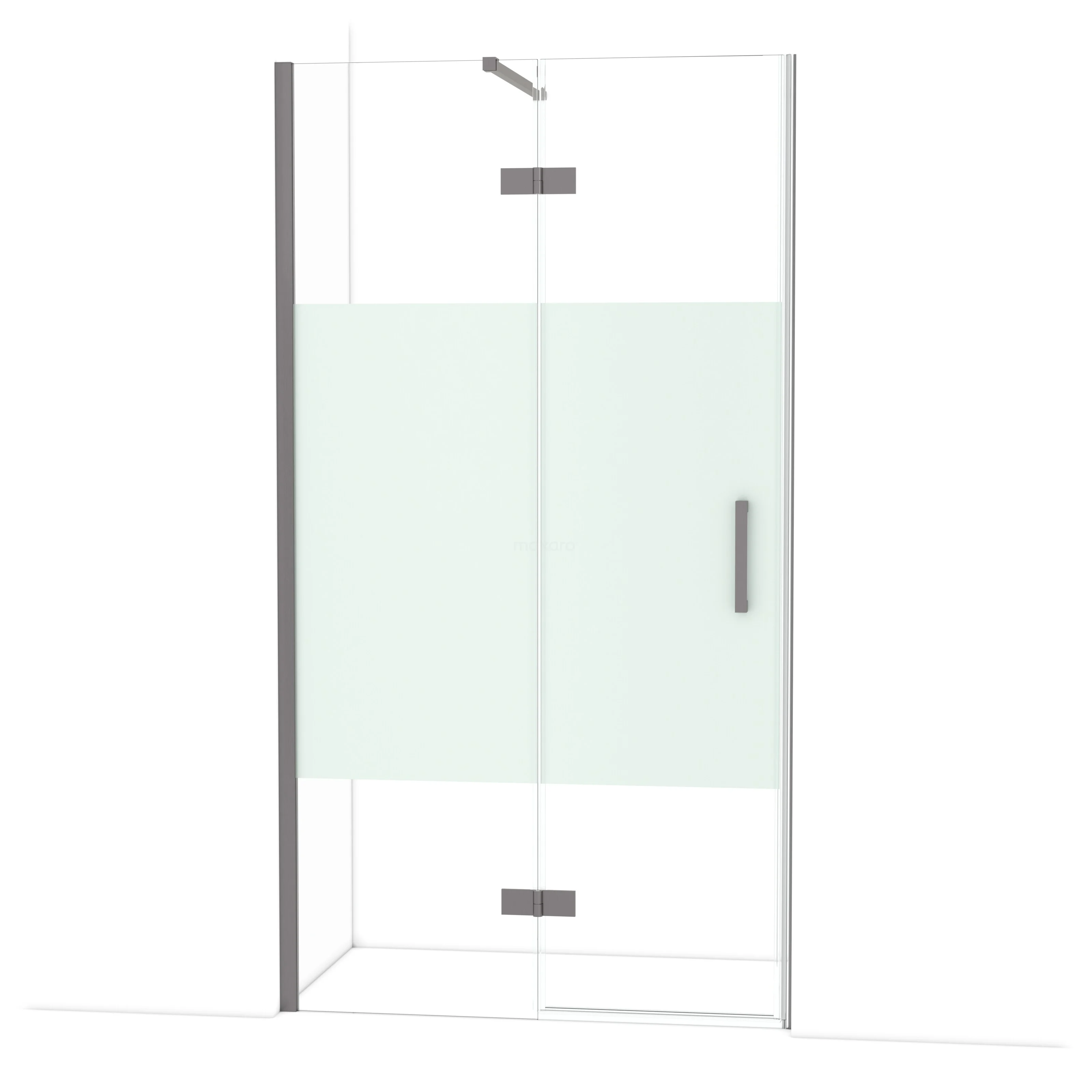 Diamond Duschtür | 110 cm Schwarzes Metall Klar mit matter Streifen Drehtür