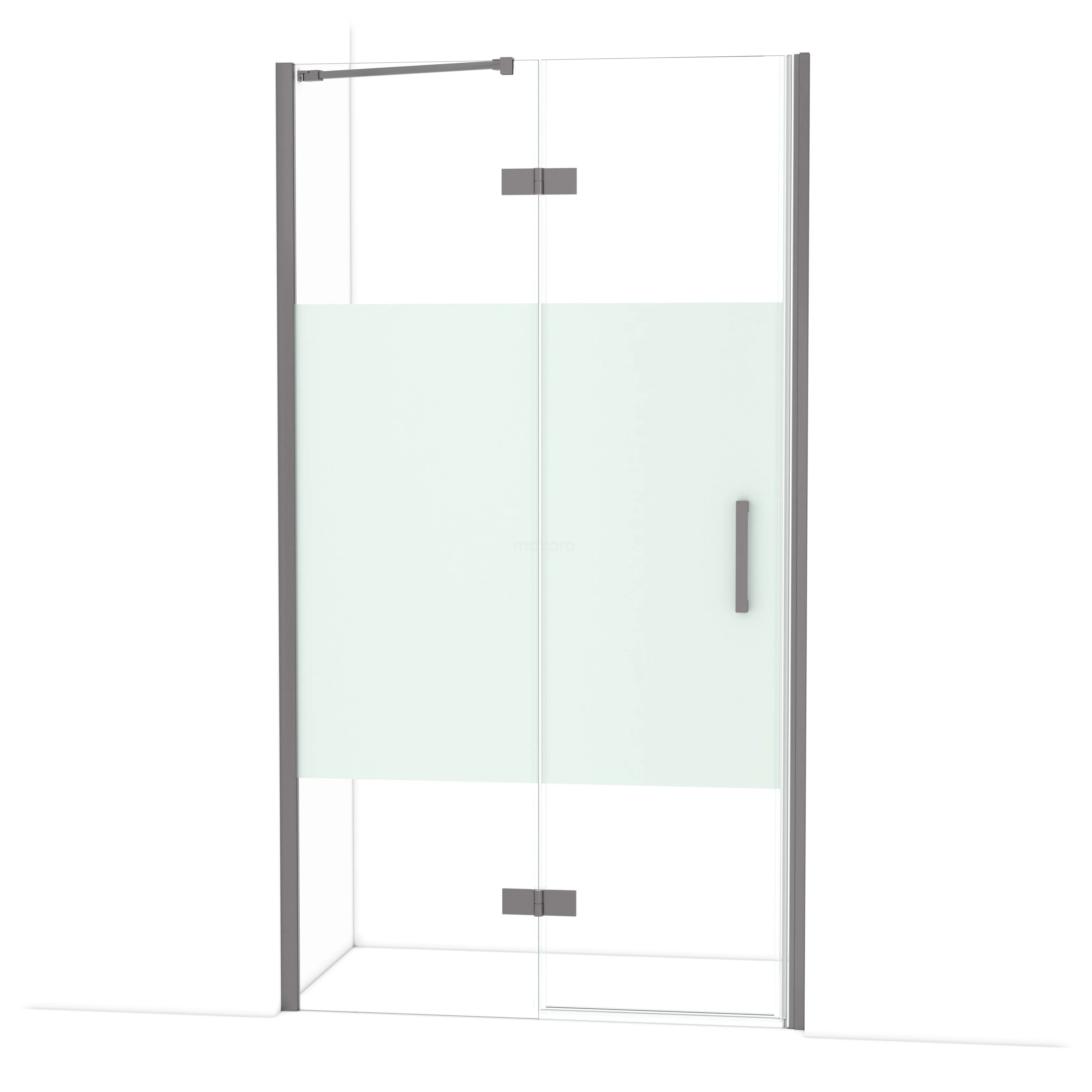 Diamond Duschtür | 110 cm Schwarzes Metall Klar mit matter Streifen Drehtür