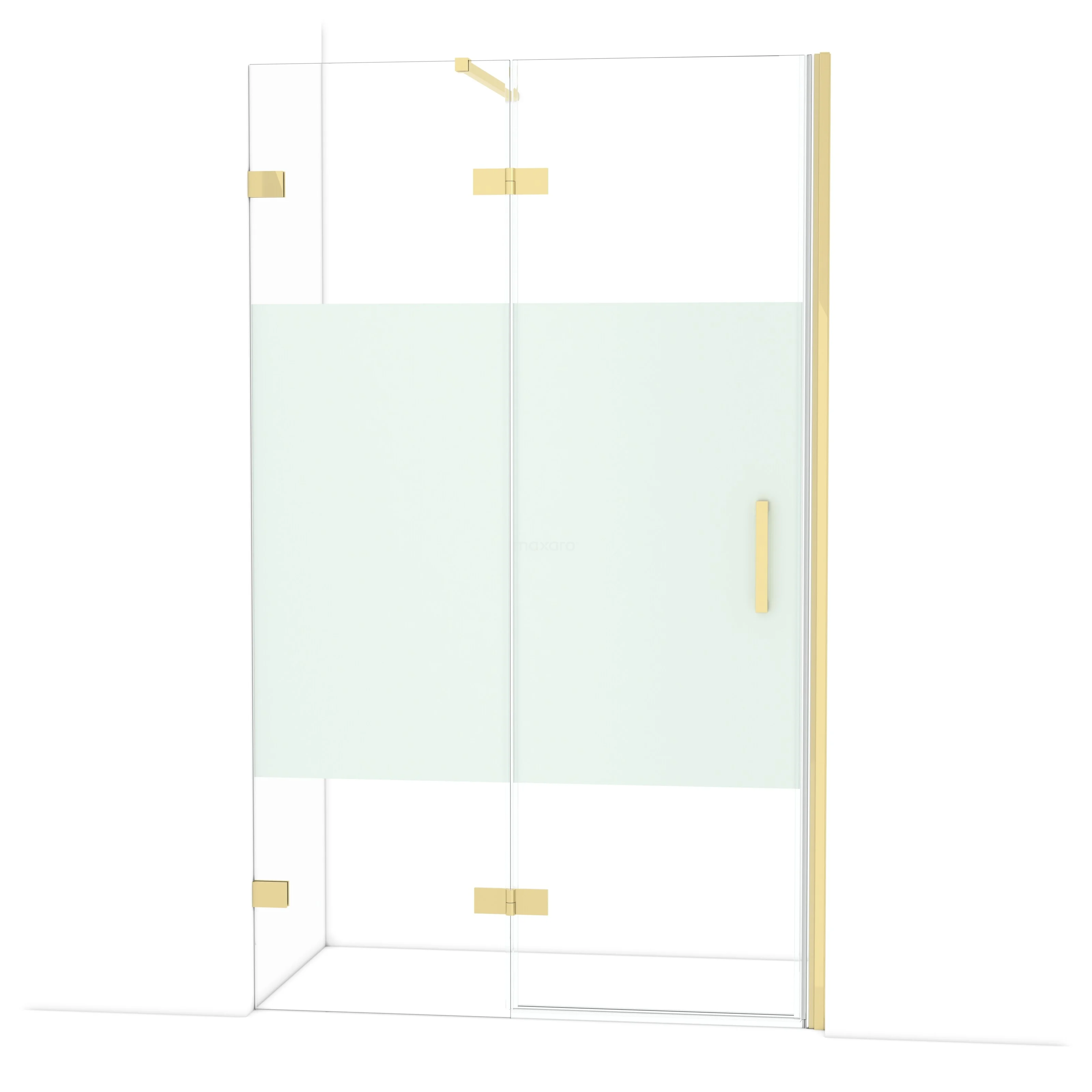 Diamond Duschtür | 120 cm Glänzendes Hellgold Klar mit matter Streifen Drehtür