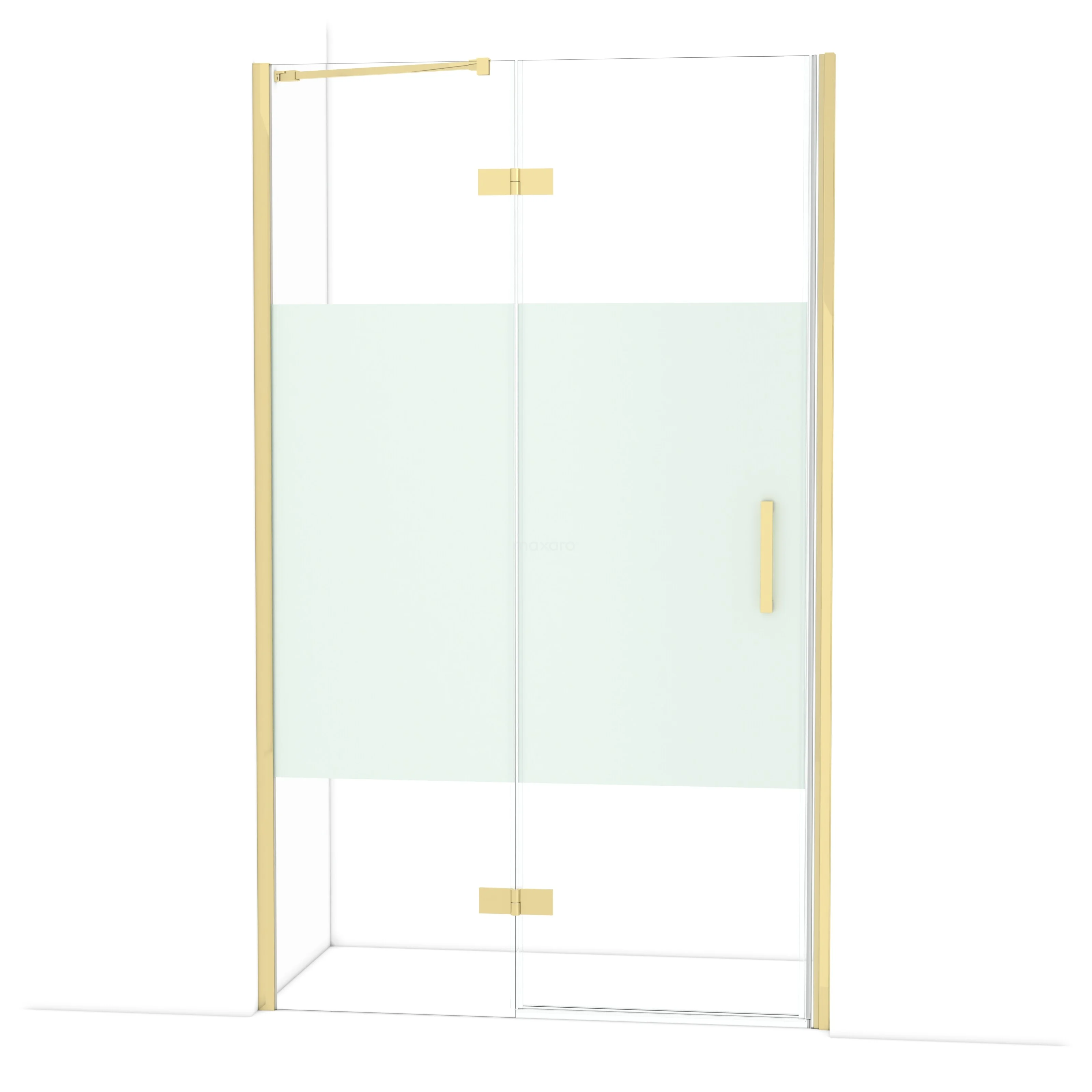 Diamond Duschtür | 120 cm Glänzendes Hellgold Klar mit matter Streifen Drehtür