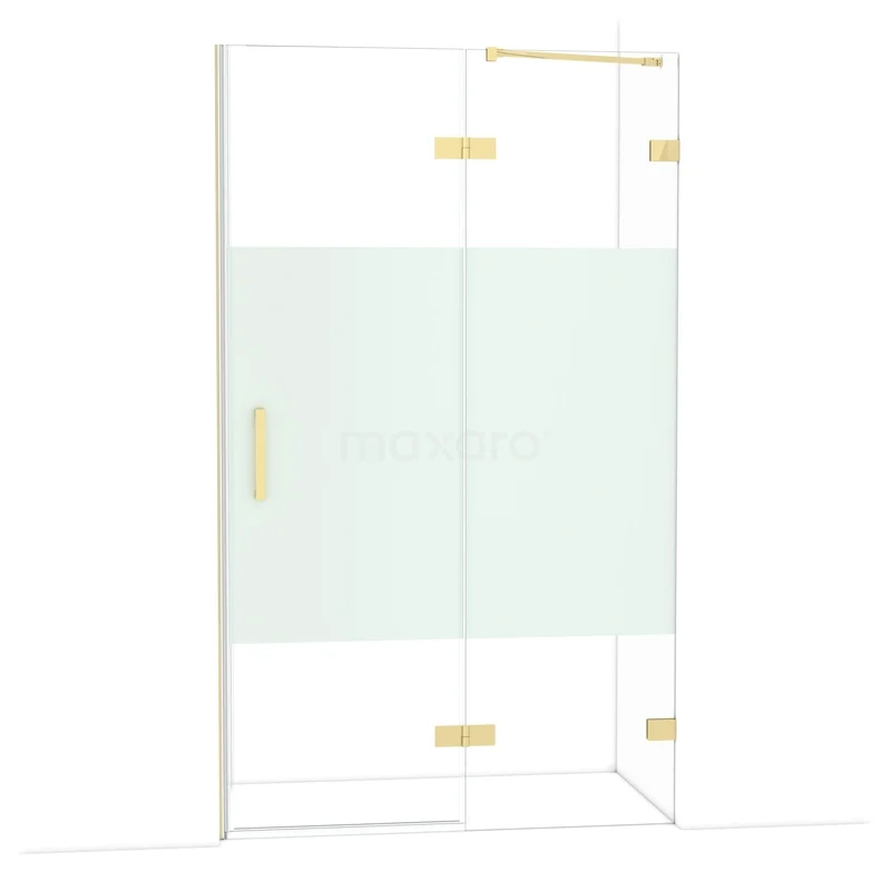 Diamond Duschtür | 120 cm Glänzendes Hellgold Klar mit matter Streifen Drehtür