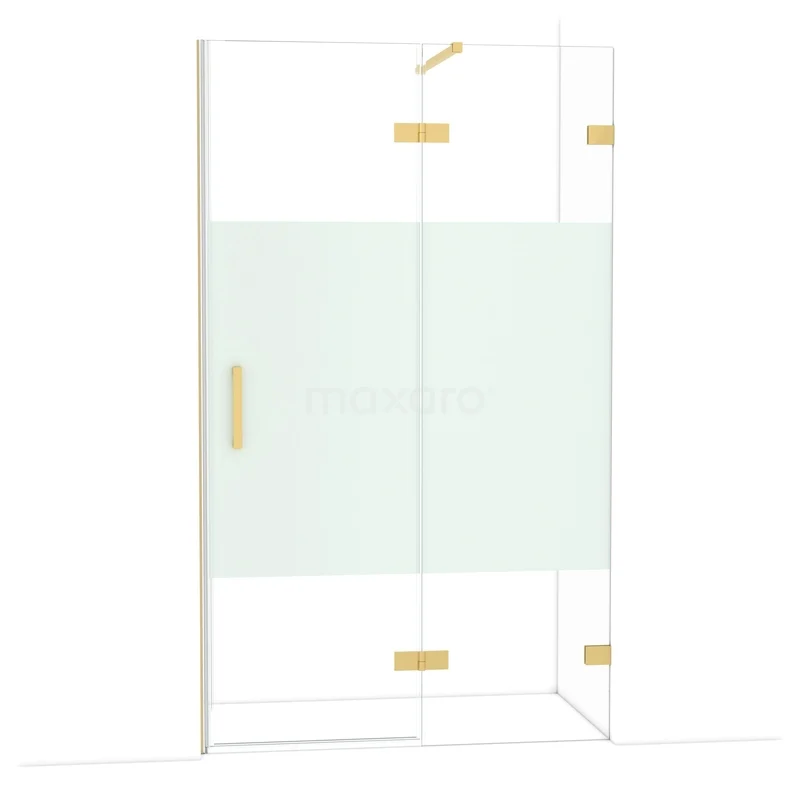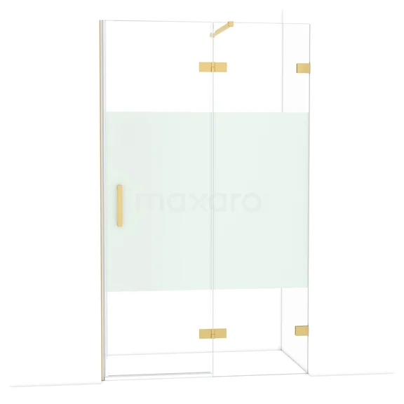 Die Diamond-Drehtür von 120 cm ist ideal, um deine Duschnis abzuschließen. Dieses Exemplar hat ein luxuriöses Design aus Gold und ist mit hochwertigen Scharnieren, einer Zweipunktbefestigung und einem vertikalen Griff ausgestattet. Das Klarglas mit matter Streifen sorgt für mehr Privatsphäre. Durch die Verstellbarkeit lässt sich die Duschtür leicht anpassen. Die Gesamtbreite ist von 119,7 bis 120 cm verstellbar.