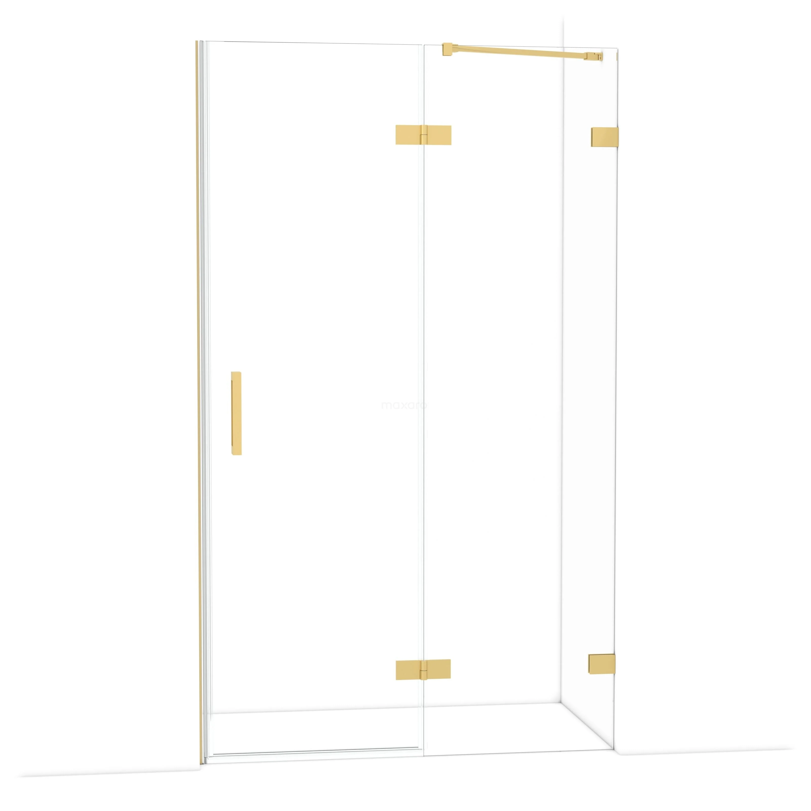 Die Diamond-Drehtür von 120 cm ist ideal, um deine Duschnis abzuschließen. Dieses Exemplar hat ein luxuriöses Design aus Gold und ist mit hochwertigen Scharnieren, einer Zweipunktbefestigung und einem vertikalen Griff ausgestattet. Das Klarglas sorgt für ein räumliches Gefühl. Durch die Verstellbarkeit lässt sich die Duschtür leicht anpassen. Die Gesamtbreite ist von 119,7 bis 120 cm verstellbar.