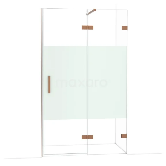 Die Diamond-Drehtür von 120 cm ist ideal, um deine Duschnis abzuschließen. Dieses Exemplar ist in Kupfer ausgeführt und mit hochwertigen Scharnieren, einer Zweipunktbefestigung und einem vertikalen Griff ausgestattet. Das Klarglas mit matter Streifen sorgt für mehr Privatsphäre. Durch die Verstellbarkeit lässt sich die Duschtür leicht anpassen. Die Gesamtbreite ist von 119,7 bis 120 cm verstellbar.