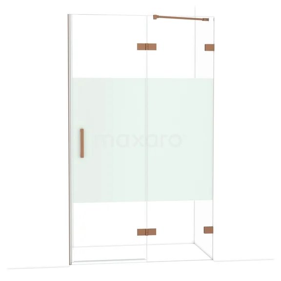 Die Diamond-Drehtür von 120 cm ist ideal, um deine Duschnis abzuschließen. Dieses Exemplar ist in Kupfer ausgeführt und mit hochwertigen Scharnieren, einer Zweipunktbefestigung und einem vertikalen Griff ausgestattet. Das Klarglas mit matter Streifen sorgt für mehr Privatsphäre. Durch die Verstellbarkeit lässt sich die Duschtür leicht anpassen. Die Gesamtbreite ist von 119,7 bis 120 cm verstellbar.