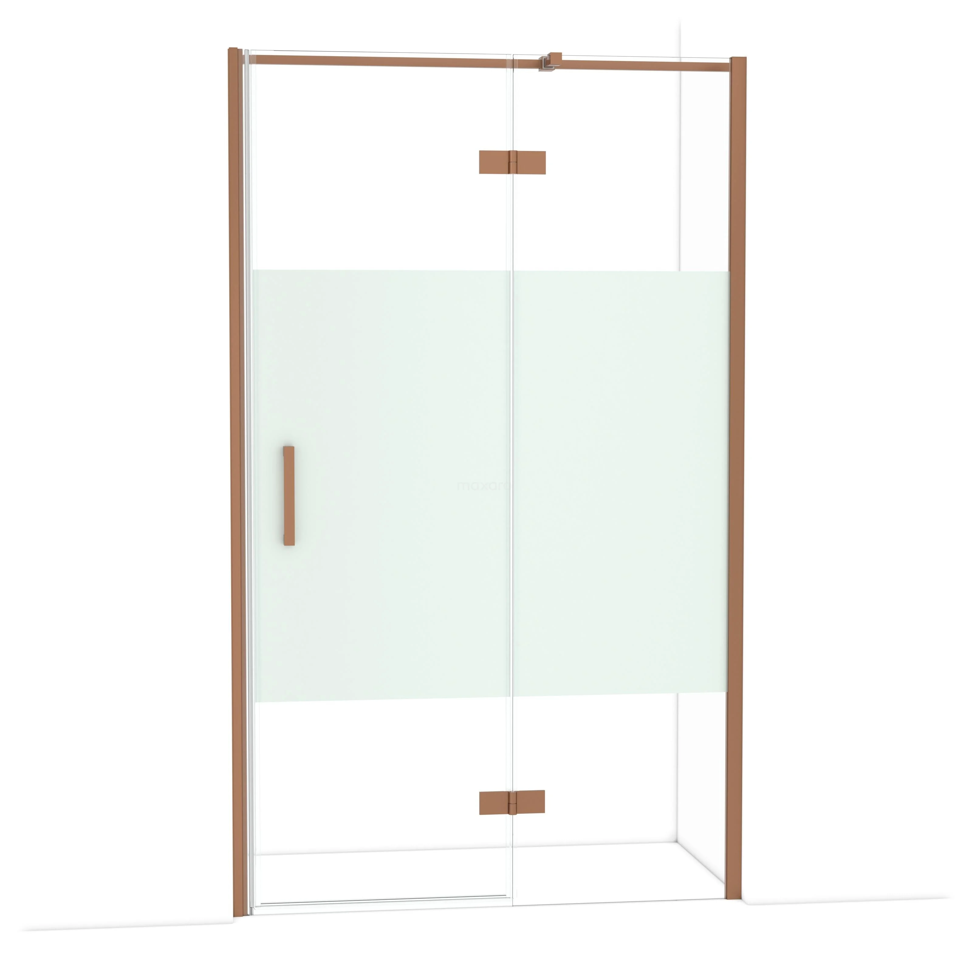 Die Diamond-Drehtür von 120 cm ist ideal, um deine Duschnis abzuschließen. Dieses Exemplar ist in Kupfer ausgeführt und mit hochwertigen Scharnieren, einem Wandprofil und einem vertikalen Griff ausgestattet. Das Klarglas mit matter Streifen sorgt für mehr Privatsphäre. Durch die Verstellbarkeit lässt sich die Duschtür leicht anpassen. Die Gesamtbreite ist von 121,8 bis 124 cm verstellbar.