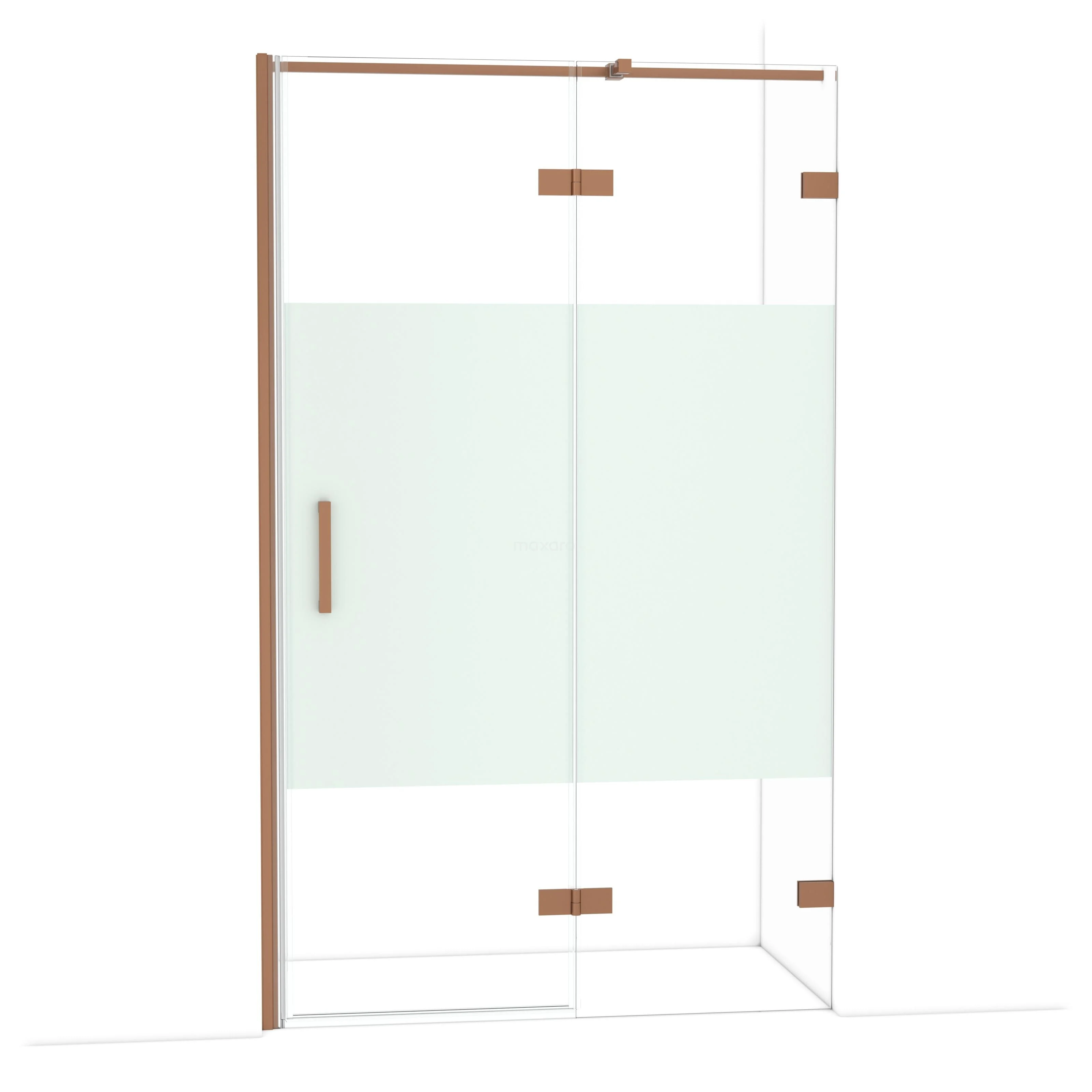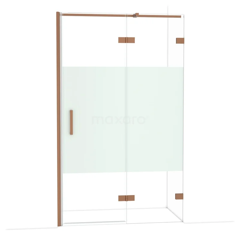Die Diamond-Drehtür von 120 cm ist ideal, um deine Duschnis abzuschließen. Dieses Exemplar ist in Kupfer ausgeführt und verfügt über hochwertige Scharniere, eine Zweipunktbefestigung und einen vertikalen Griff. Das Klarglas mit matter Streifen sorgt für mehr Privatsphäre. Durch die Verstellbarkeit lässt sich die Duschtür leicht anpassen. Die Gesamtbreite ist von 121,7 bis 122,7 cm verstellbar.