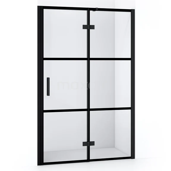 Diamond Duschtür | 120 cm Matt Schwarz Klar mit 4 schwarzen Streifen Drehtür