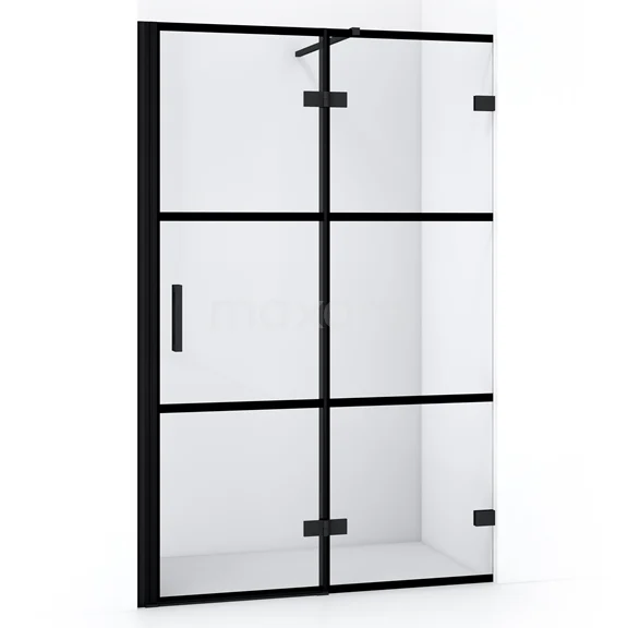 Diamond Duschtür | 120 cm Matt Schwarz Klar mit 4 schwarzen Streifen Drehtür