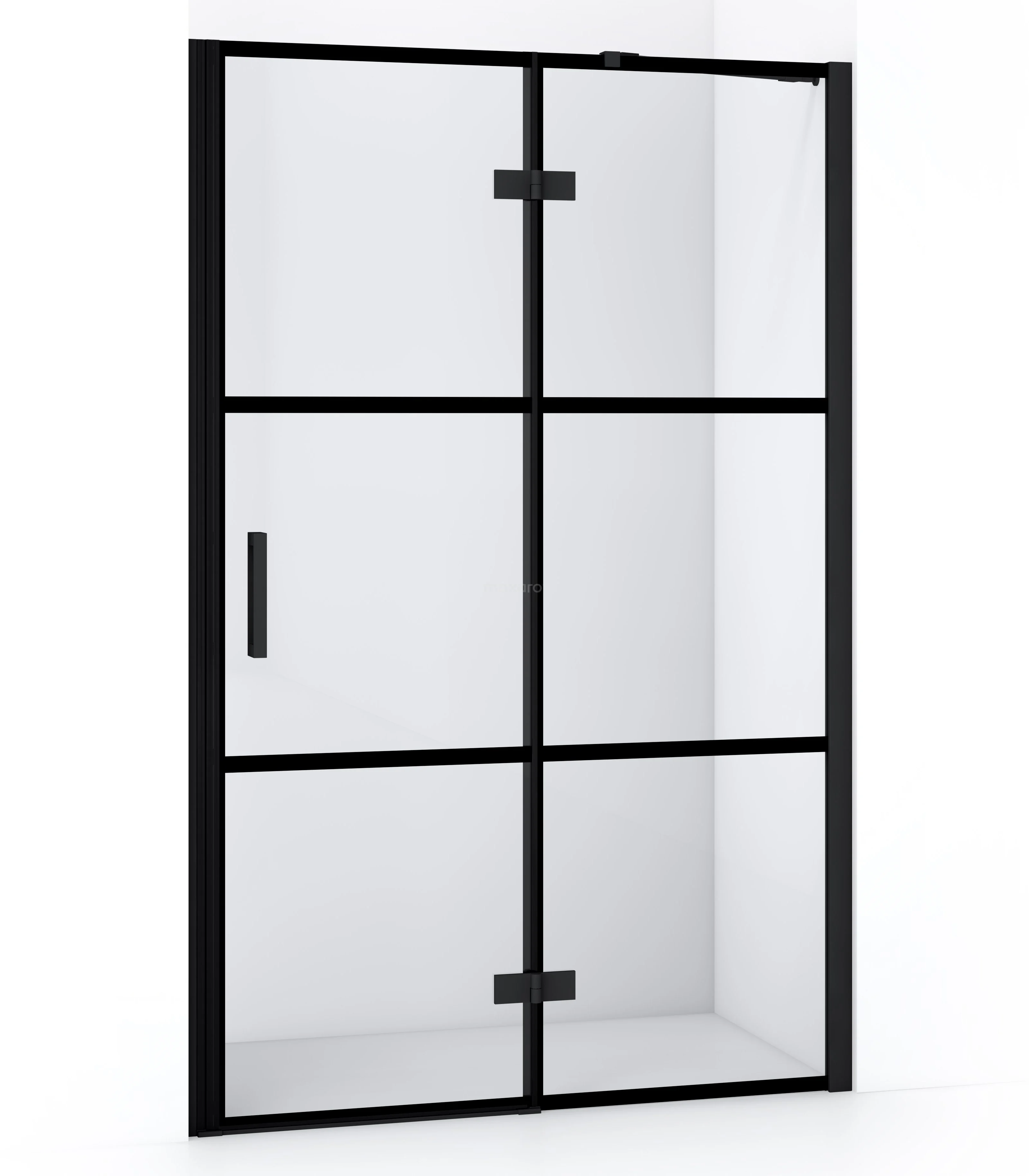 Diamond Duschtür | 120 cm Matt Schwarz Klar mit 4 schwarzen Streifen Drehtür