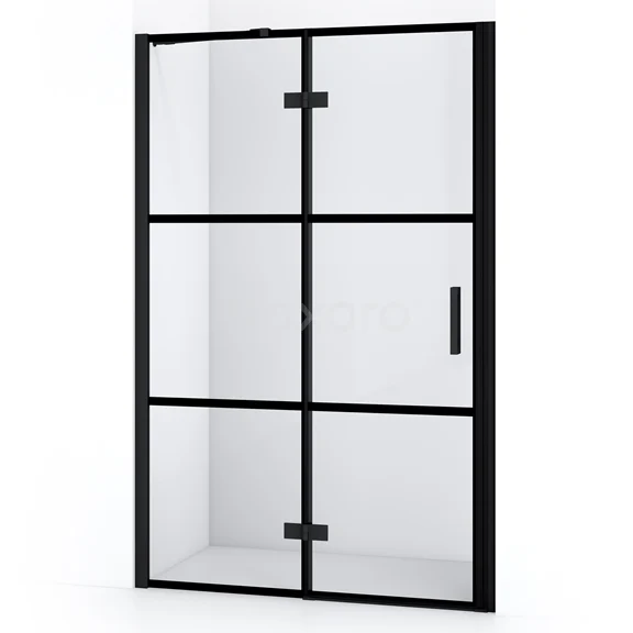 Diamond Duschtür | 120 cm Matt Schwarz Klar mit 4 schwarzen Streifen Drehtür