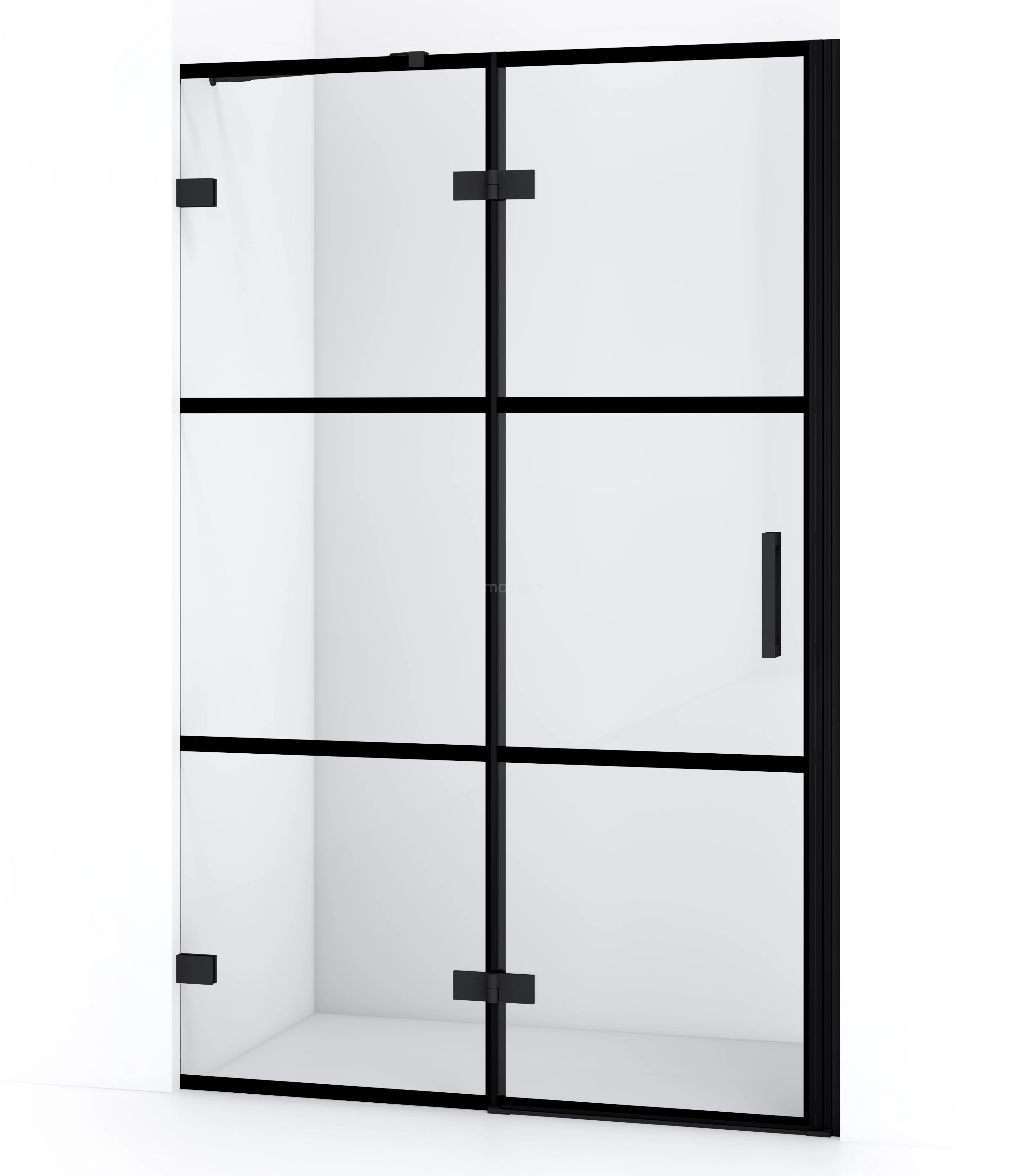 Diamond Duschtür | 120 cm Matt Schwarz Klar mit 4 schwarzen Streifen Drehtür