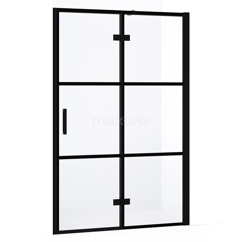 Diamond Duschtür | 120 cm Matt Schwarz Klar mit 4 schwarzen Streifen Drehtür