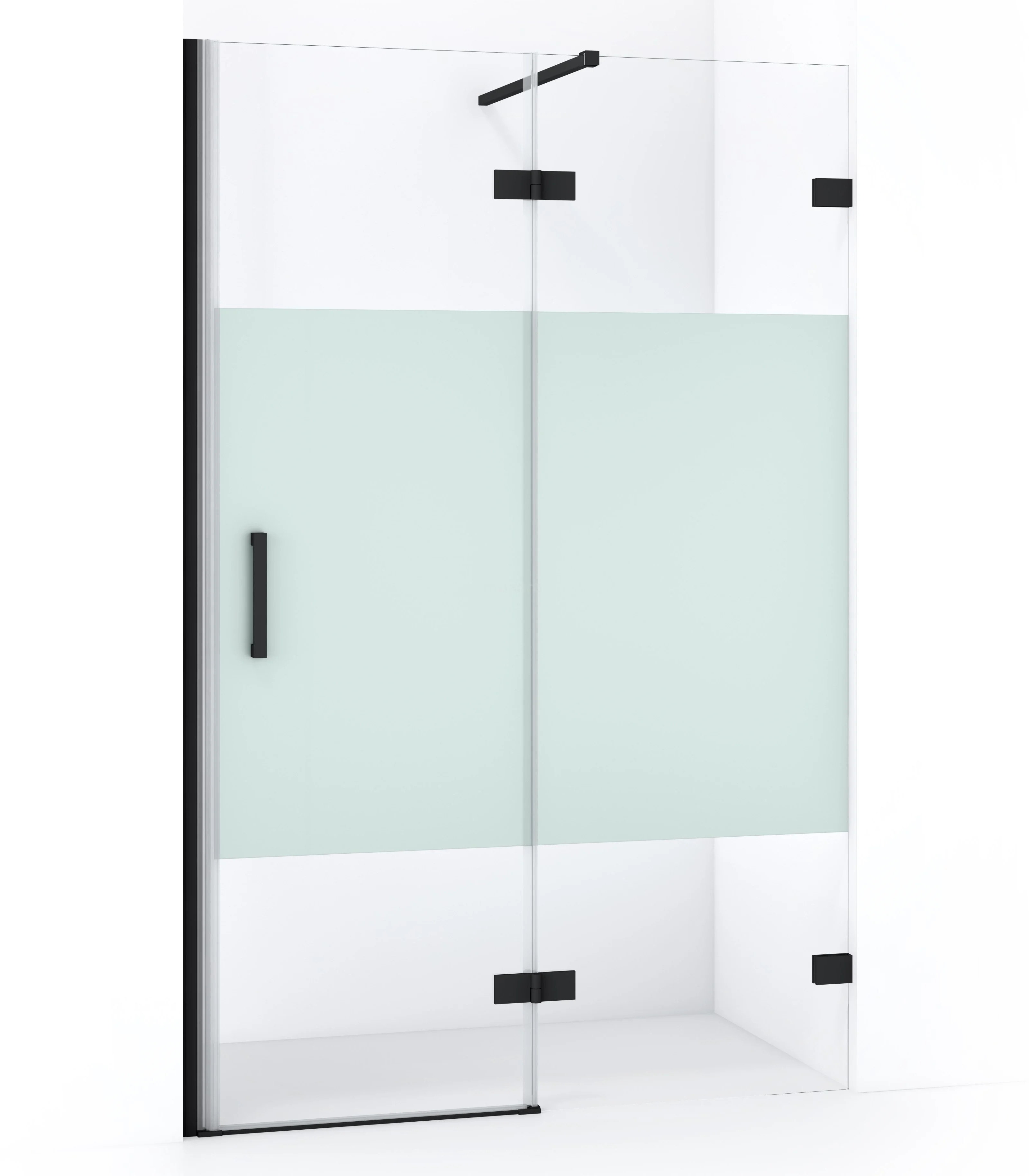 Diamond Duschtür | 120 cm Matt Schwarz Klar mit matter Streifen Drehtür