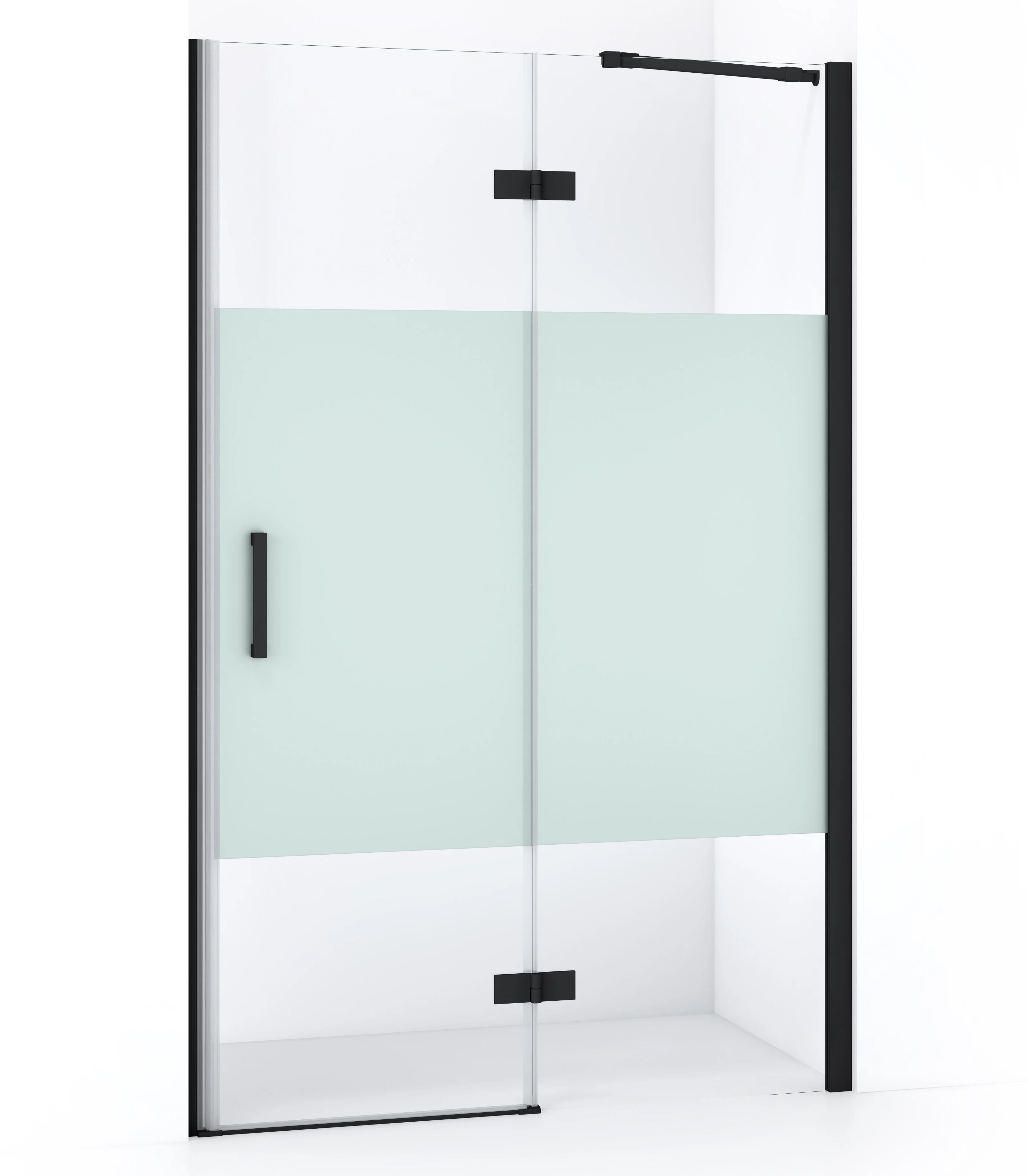 Diamond Duschtür | 120 cm Matt Schwarz Klar mit matter Streifen Drehtür