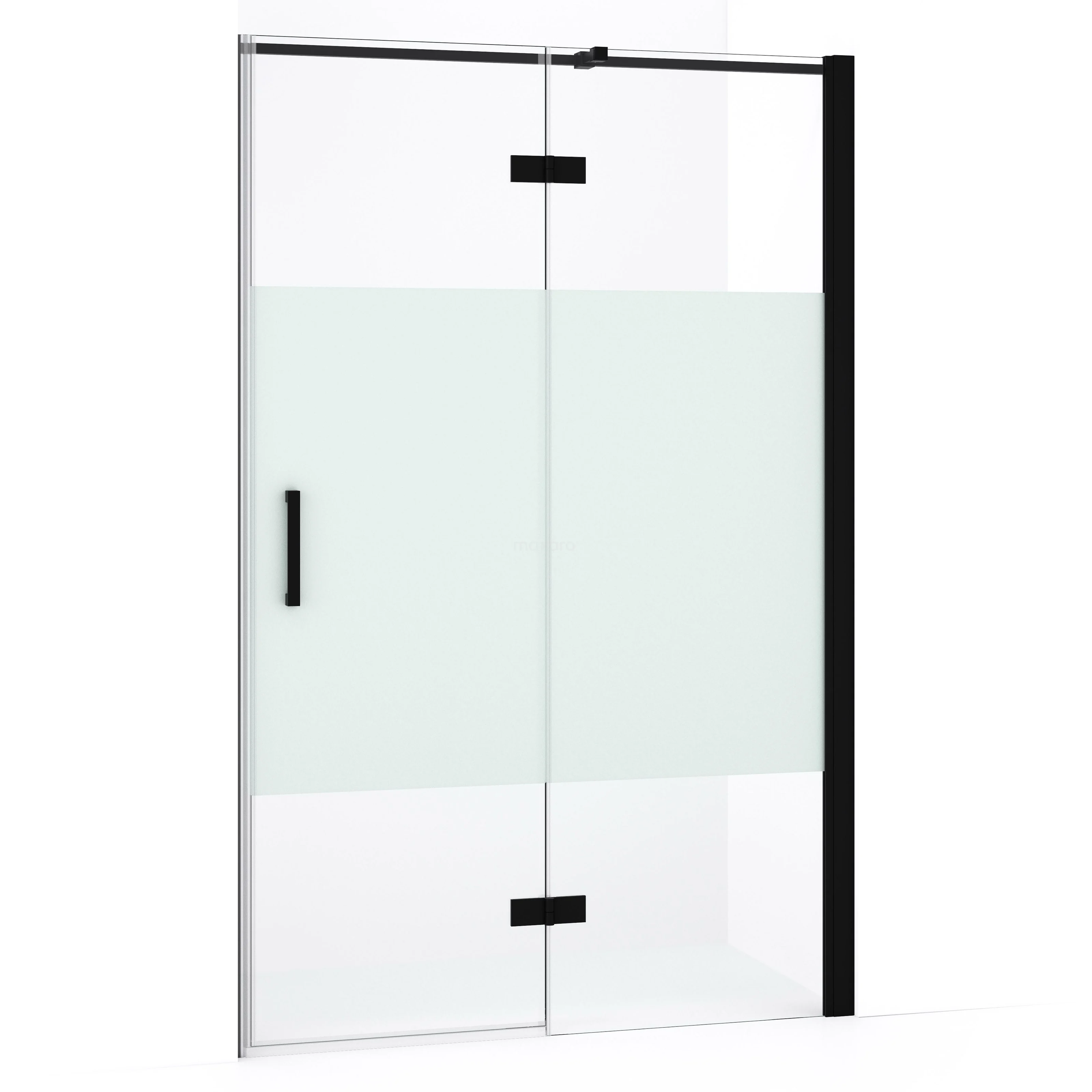 Diamond Duschtür | 120 cm Matt Schwarz Klar mit matter Streifen Drehtür