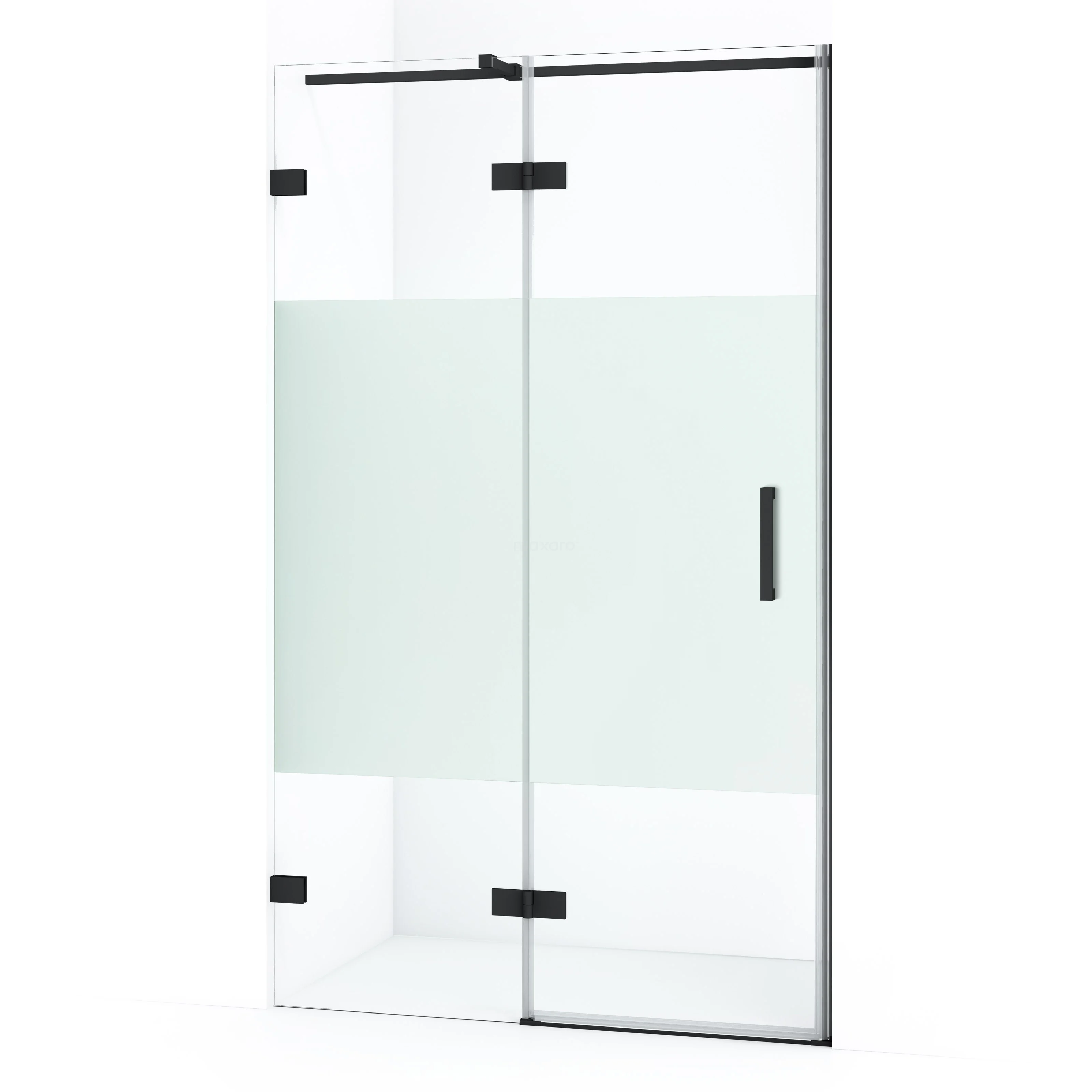 Diamond Duschtür | 120 cm Matt Schwarz Klar mit matter Streifen Drehtür