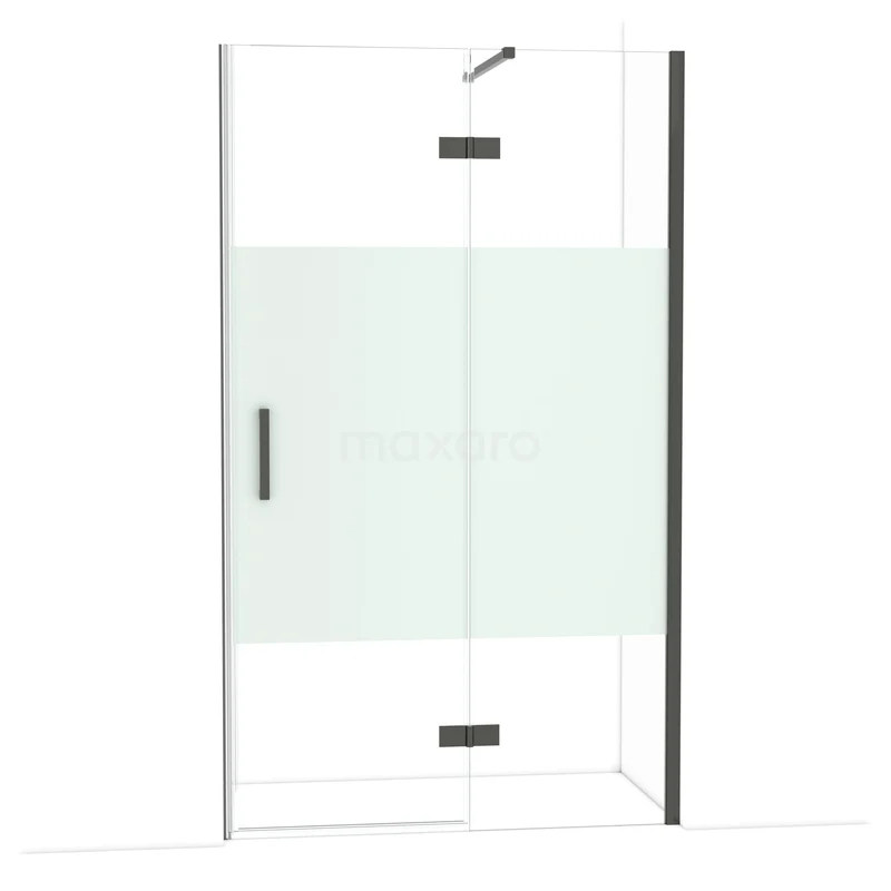 Diamond Duschtür | 120 cm Schwarzchrom Klar mit matter Streifen Drehtür
